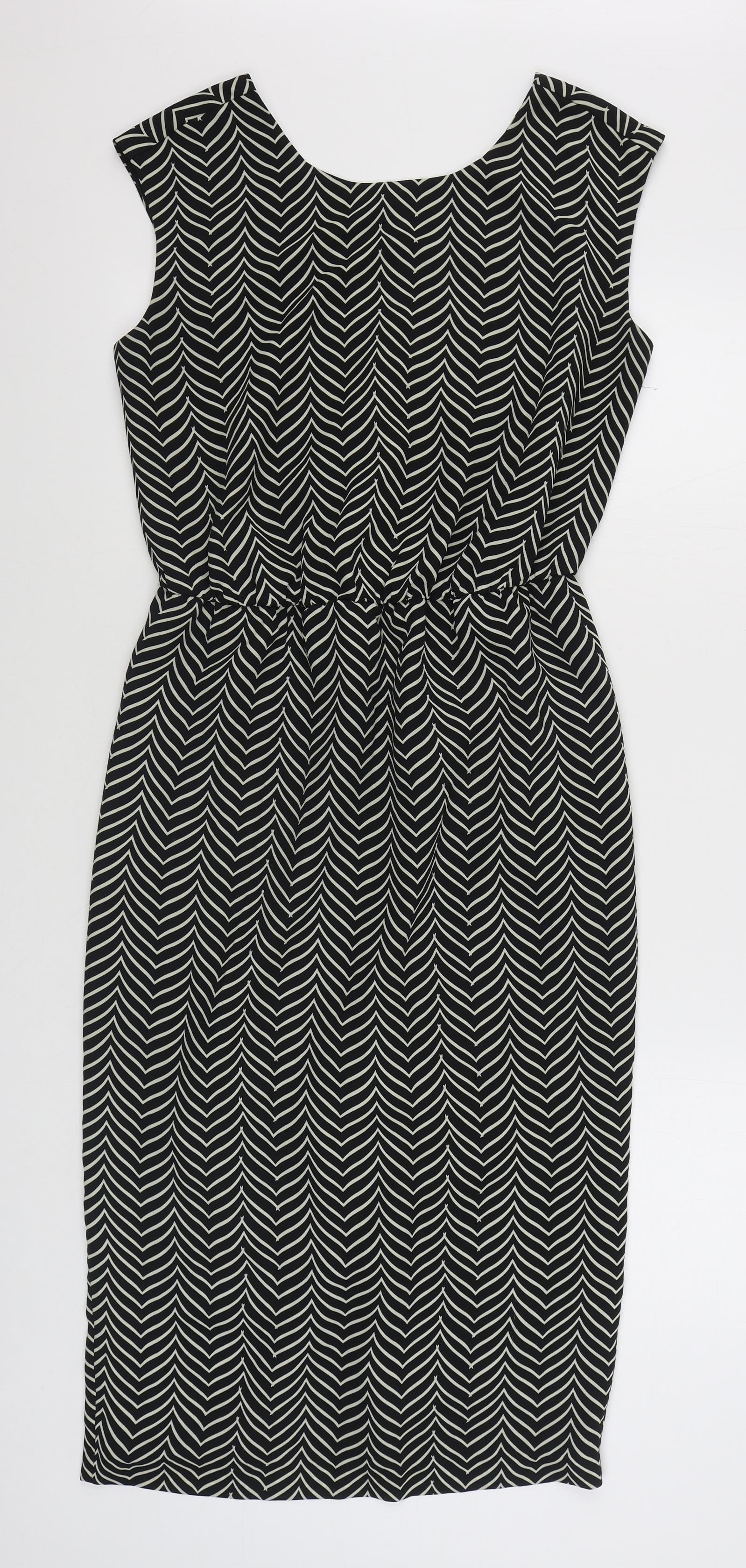 NEXT Womens Black Herringbone Polyester Sheath Size 8 V-Neck Pullover