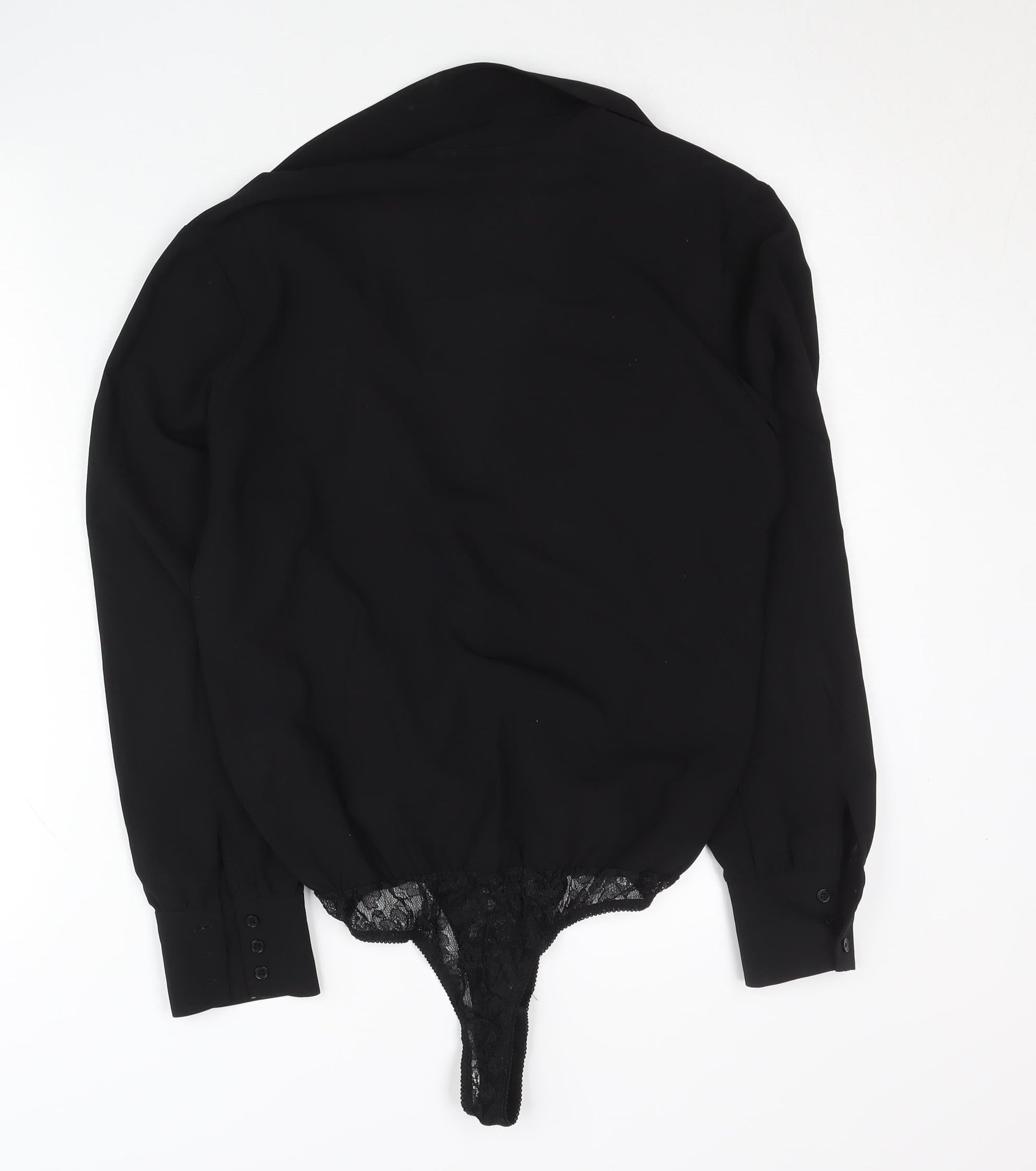 Next Womens Black Lace Collar Bodysuit UK 12 Long Sleeve Party