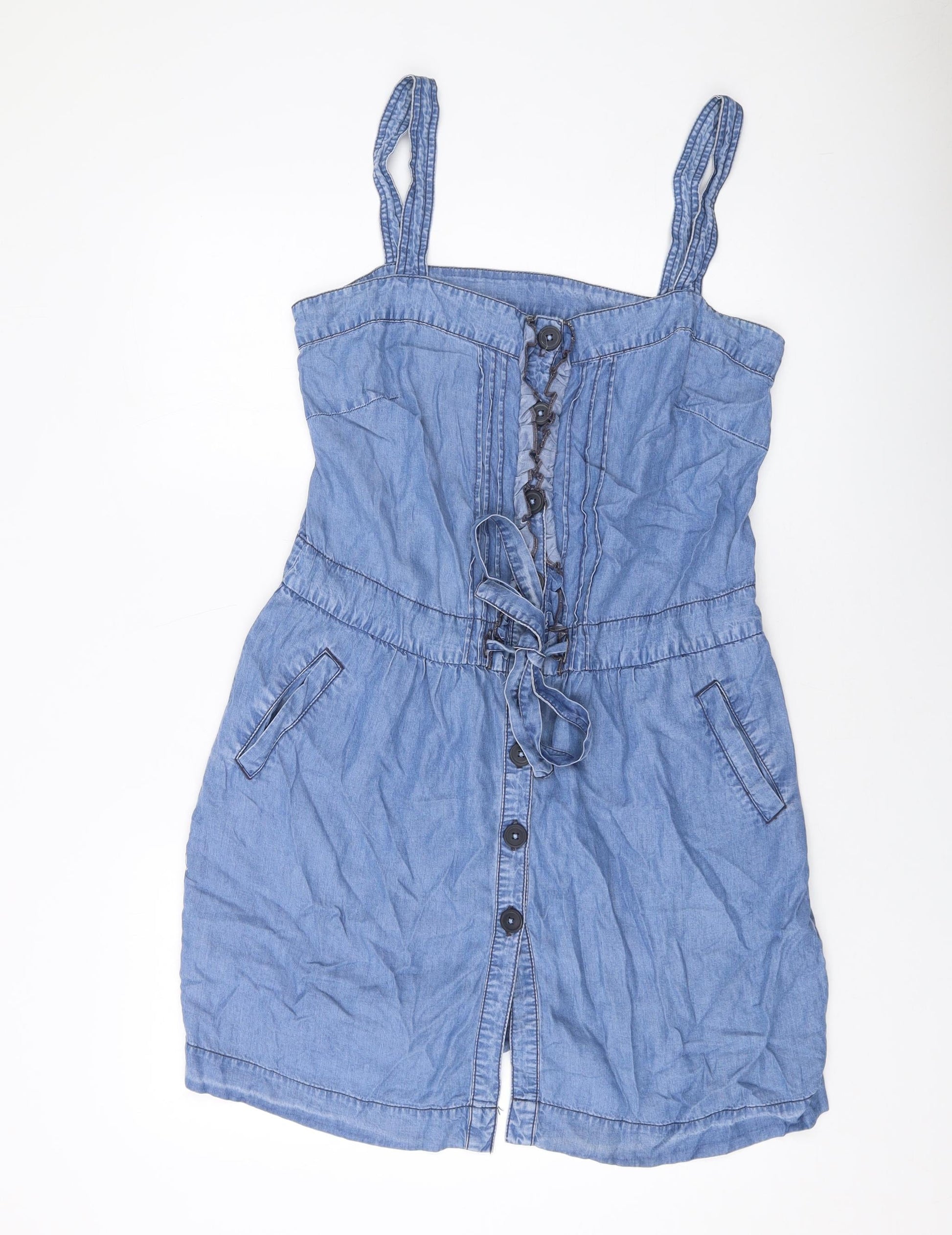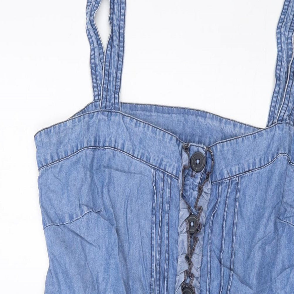 NEXT Womens Black Lyocell A-Line Size 14 Square Neck Button