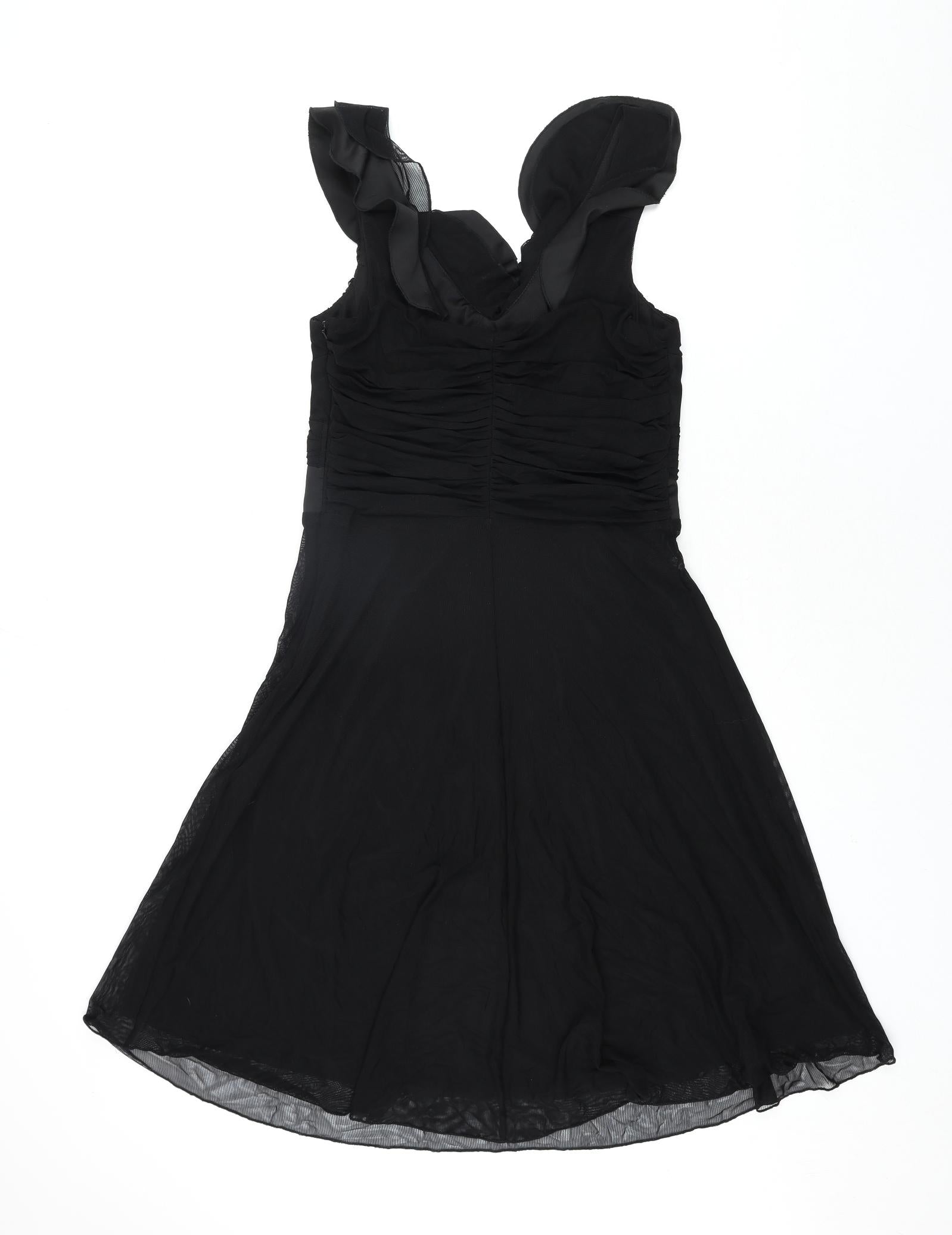 NEXT Womens Black Nylon Fit & Flare Size 12 V-Neck Pullover - Frill