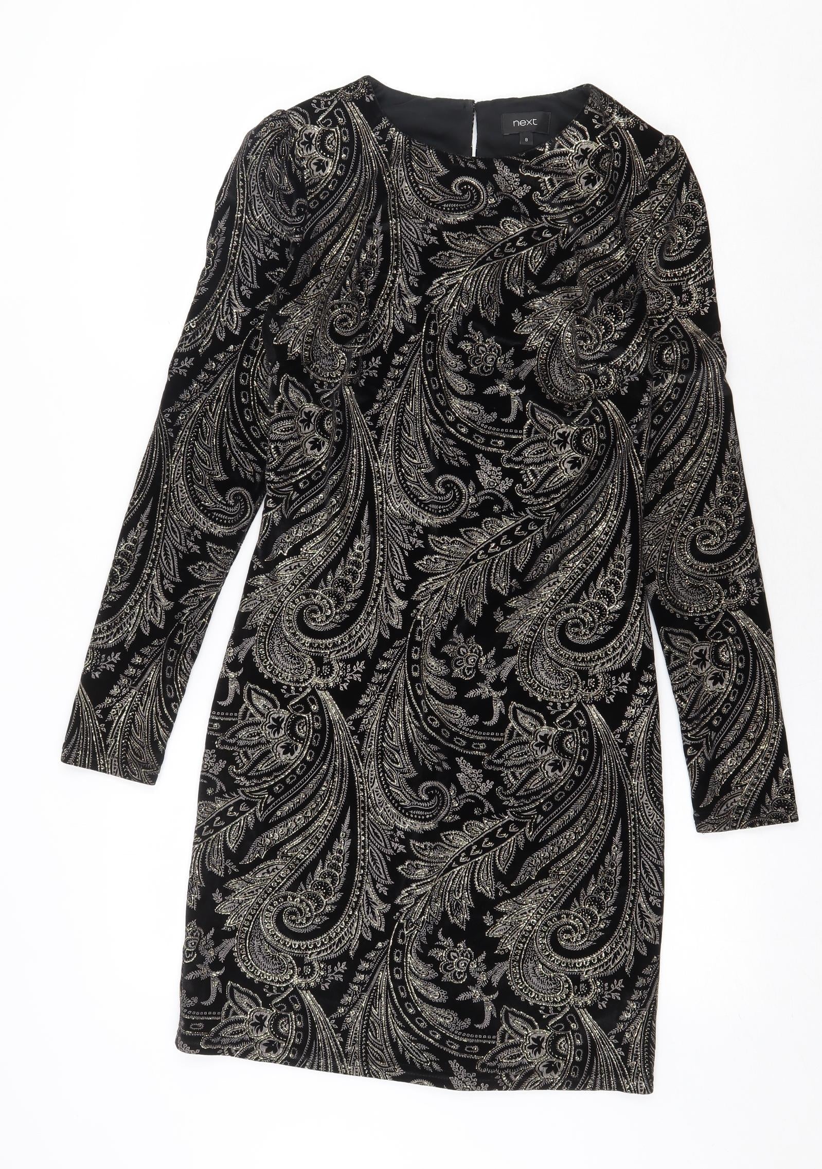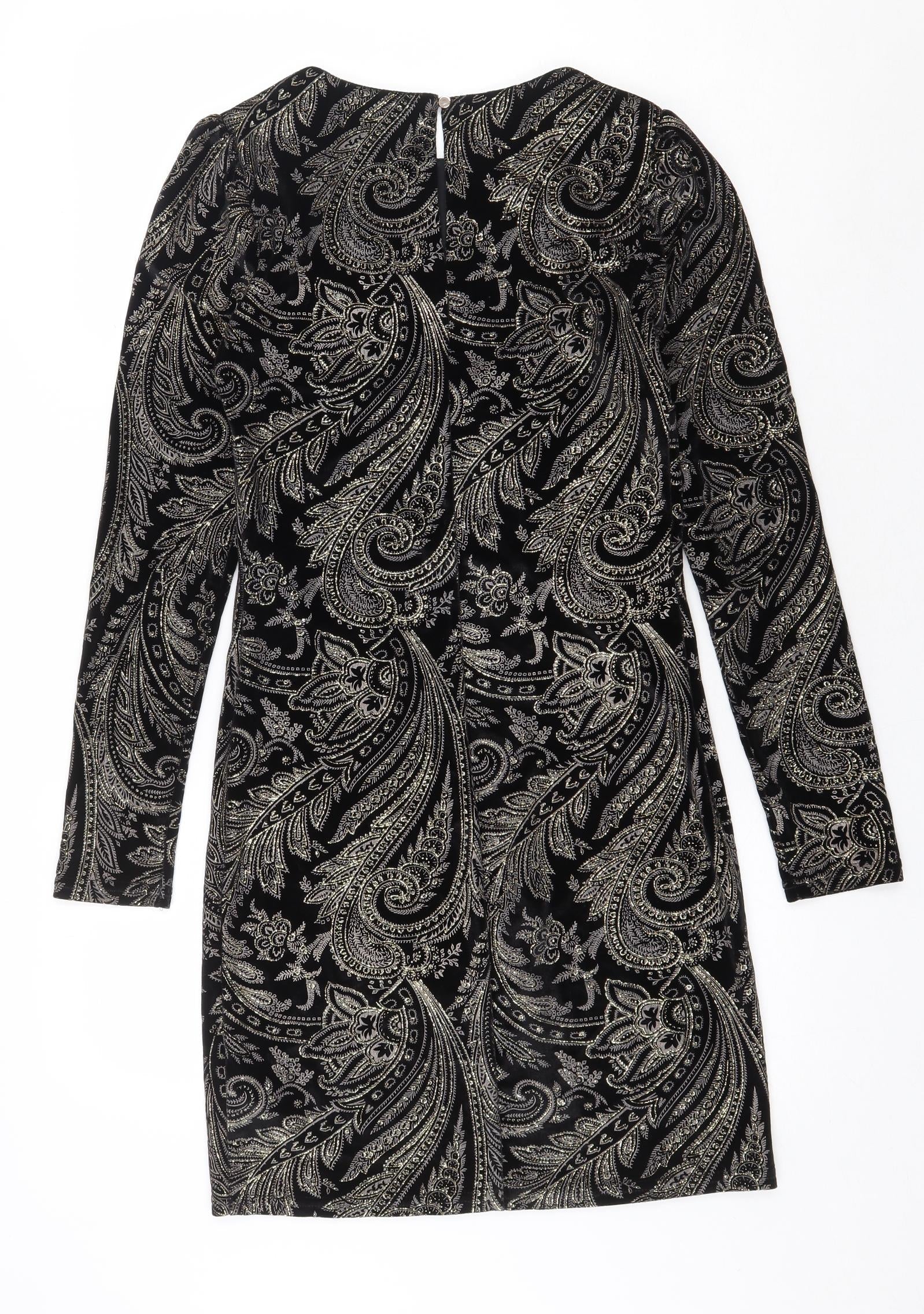 NEXT Womens Black Paisley Polyester Shift Size 8 Round Neck Button