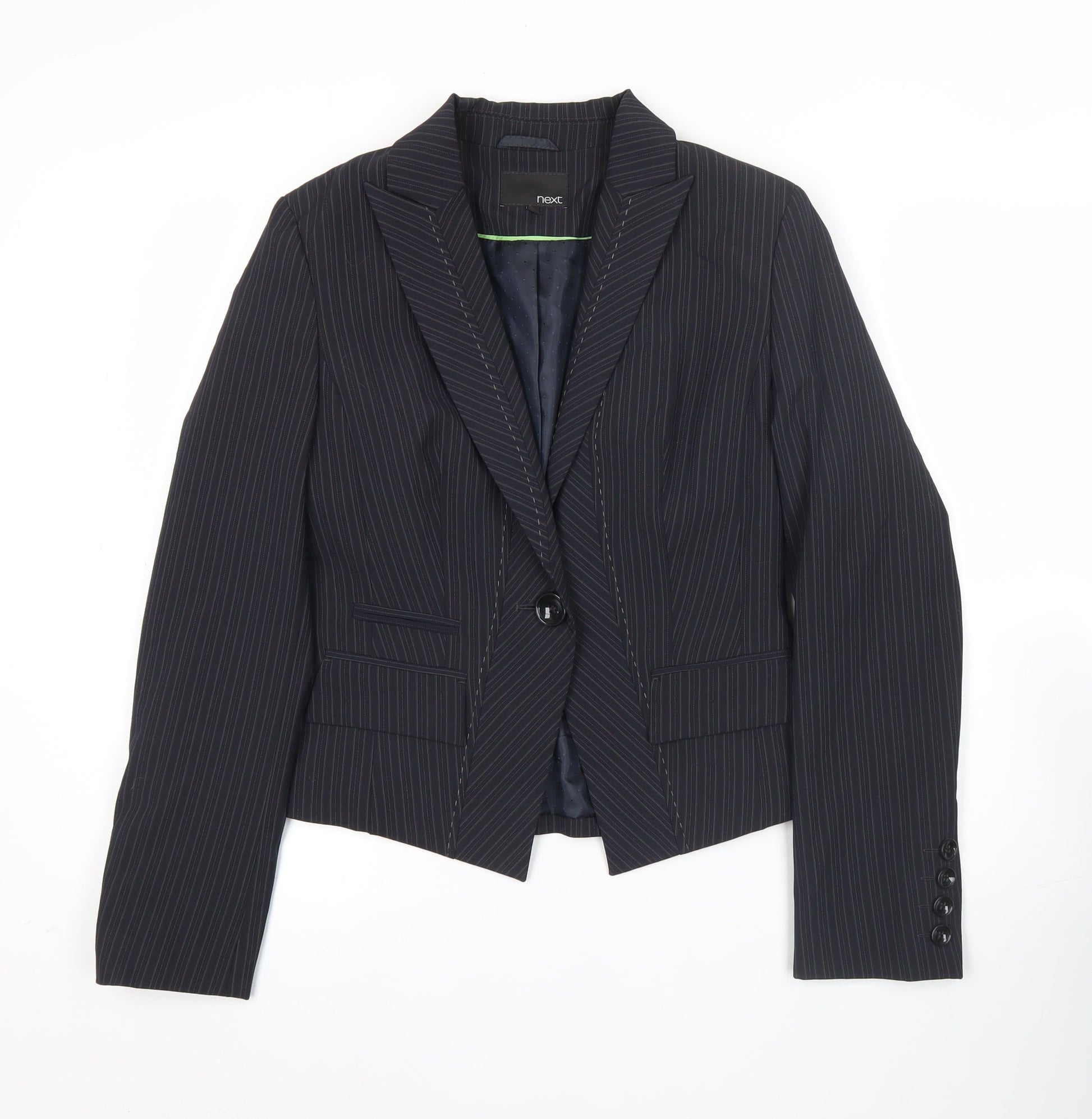 Next Womens Black Pinstripe Blazer Size 10 Slim Fit Notch Lapel