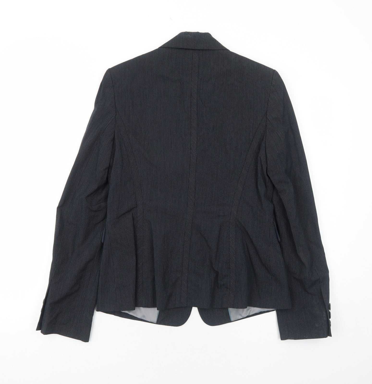 NEXT Womens Black Pinstripe Polyester Jacket Blazer Size 12