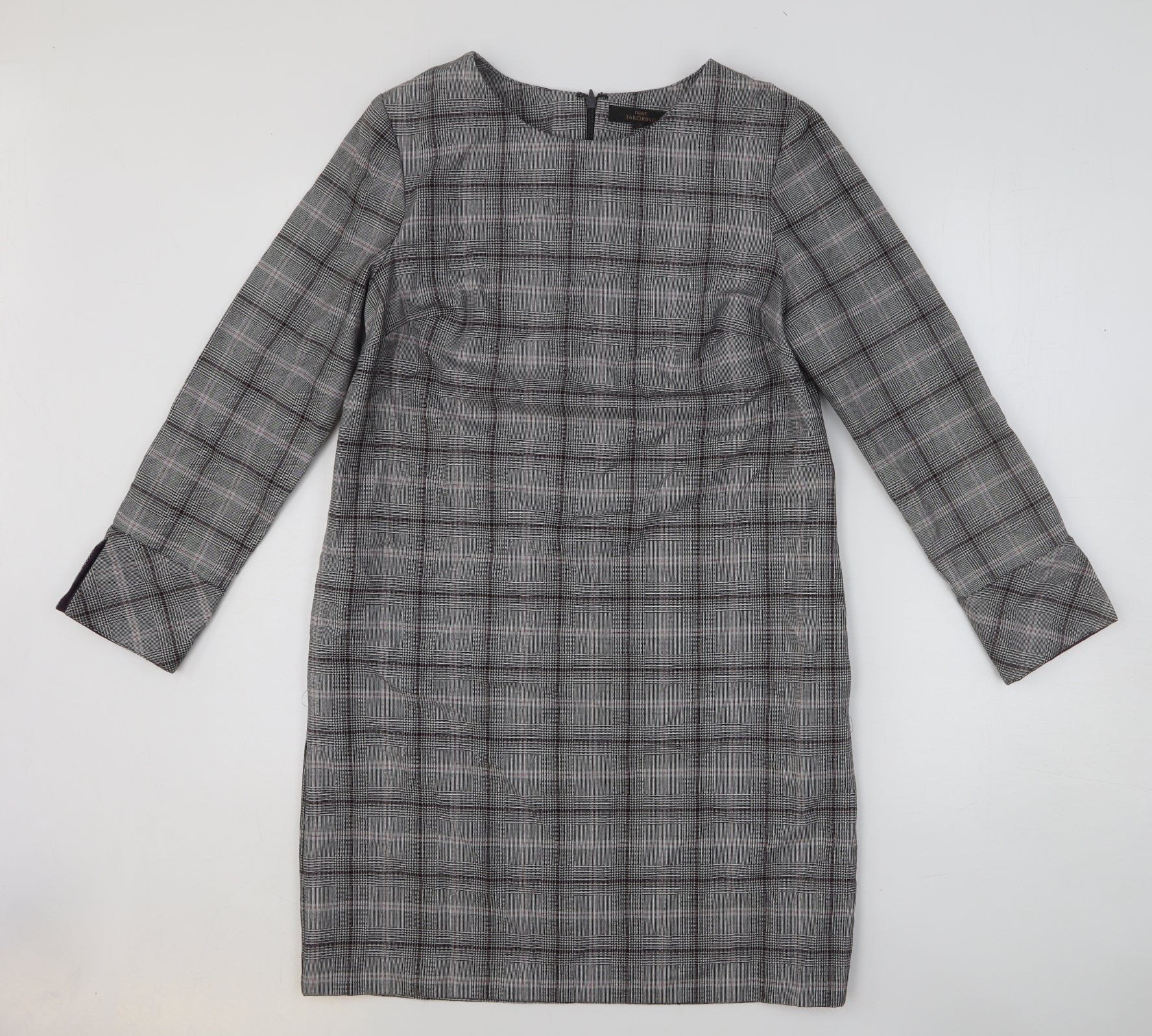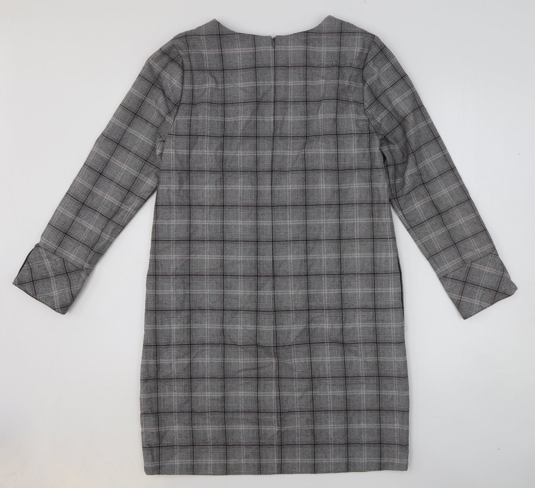 NEXT Womens Black Plaid Polyester Shift Size 10 Scoop Neck Zip