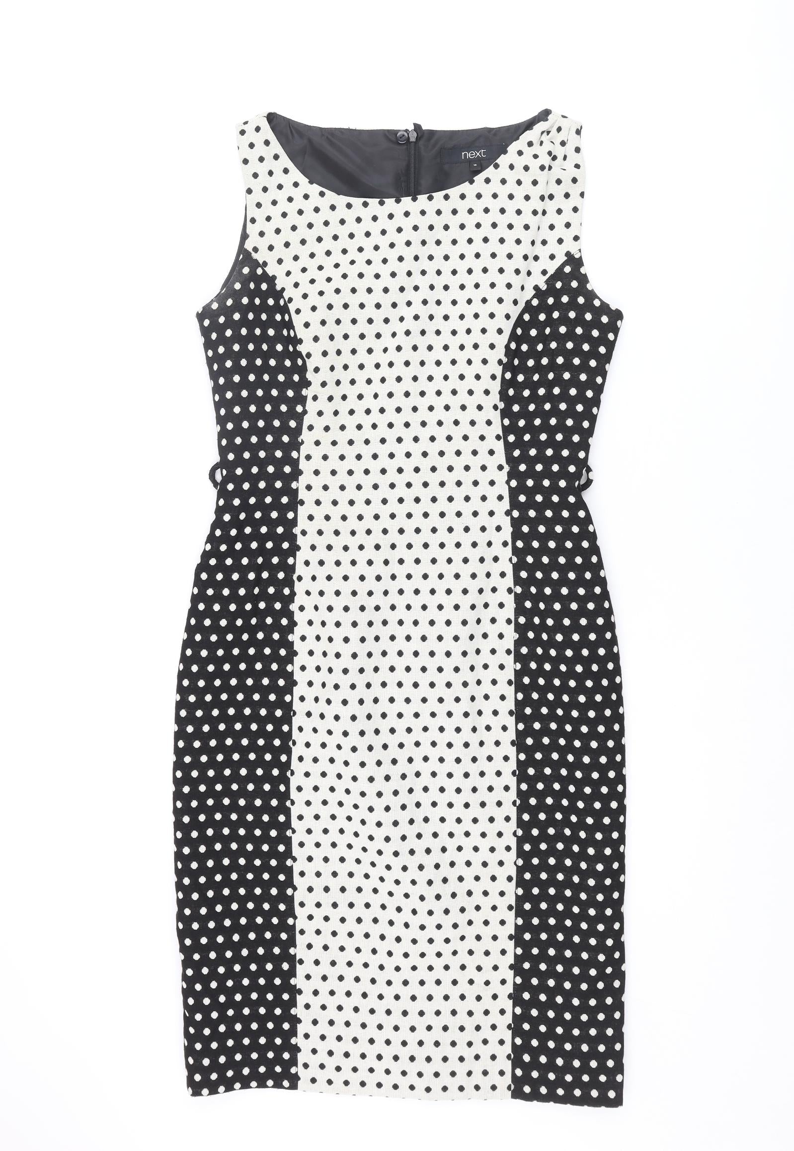 NEXT Womens Black Polka Dot Cotton Shift Size 10 Round Neck Zip
