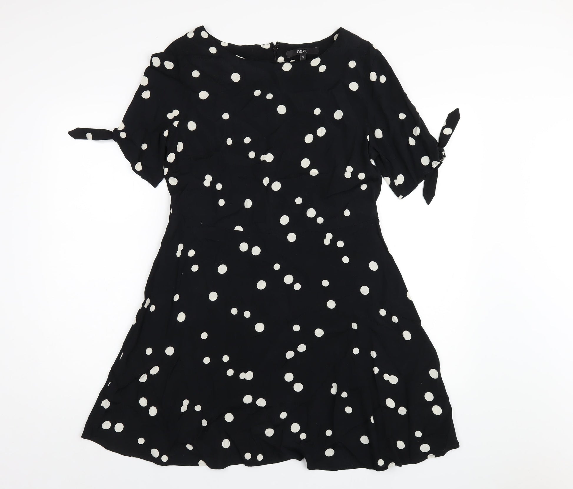 NEXT Womens Black Polka Dot Viscose A-Line Size 12 Round Neck Zip
