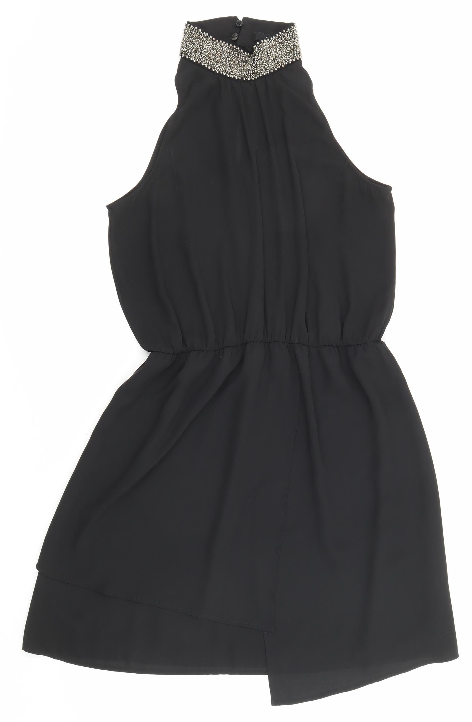 NEXT Womens Black Polyester A-Line Size 12 Halter Button - Embellished neckline