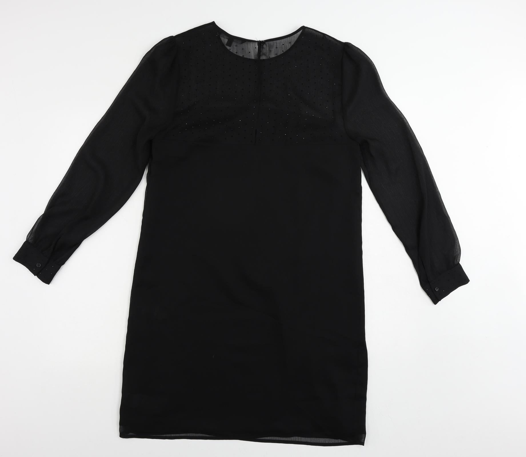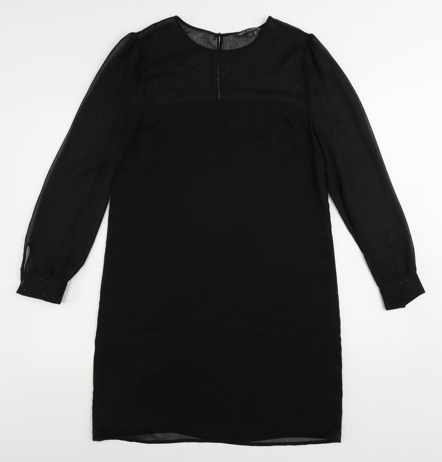 NEXT Womens Black Polyester A-Line Size 12 Round Neck Button - Embellished