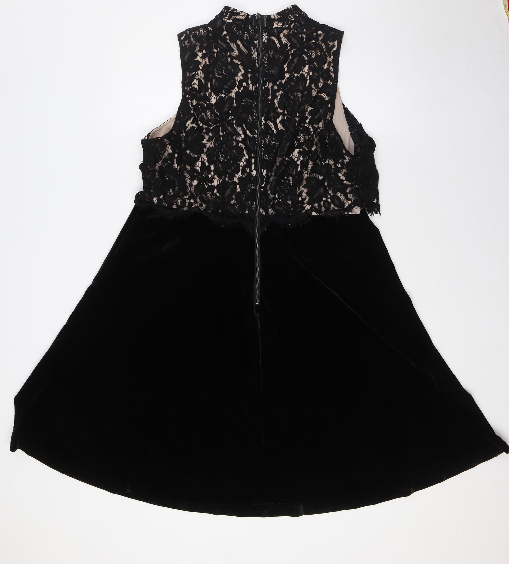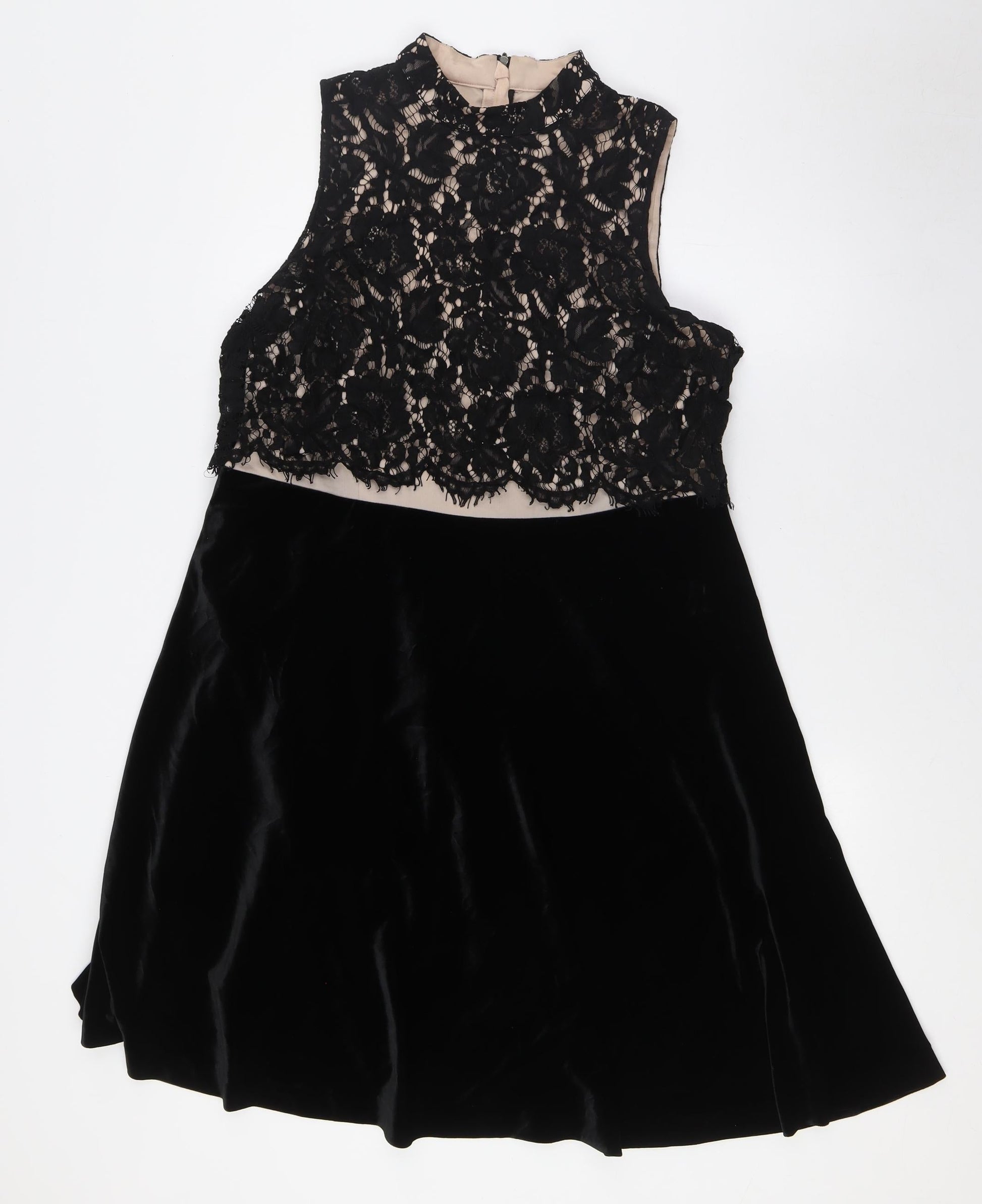 NEXT Womens Black Polyester A-Line Size 16 Mock Neck Zip - Lace Overlay
