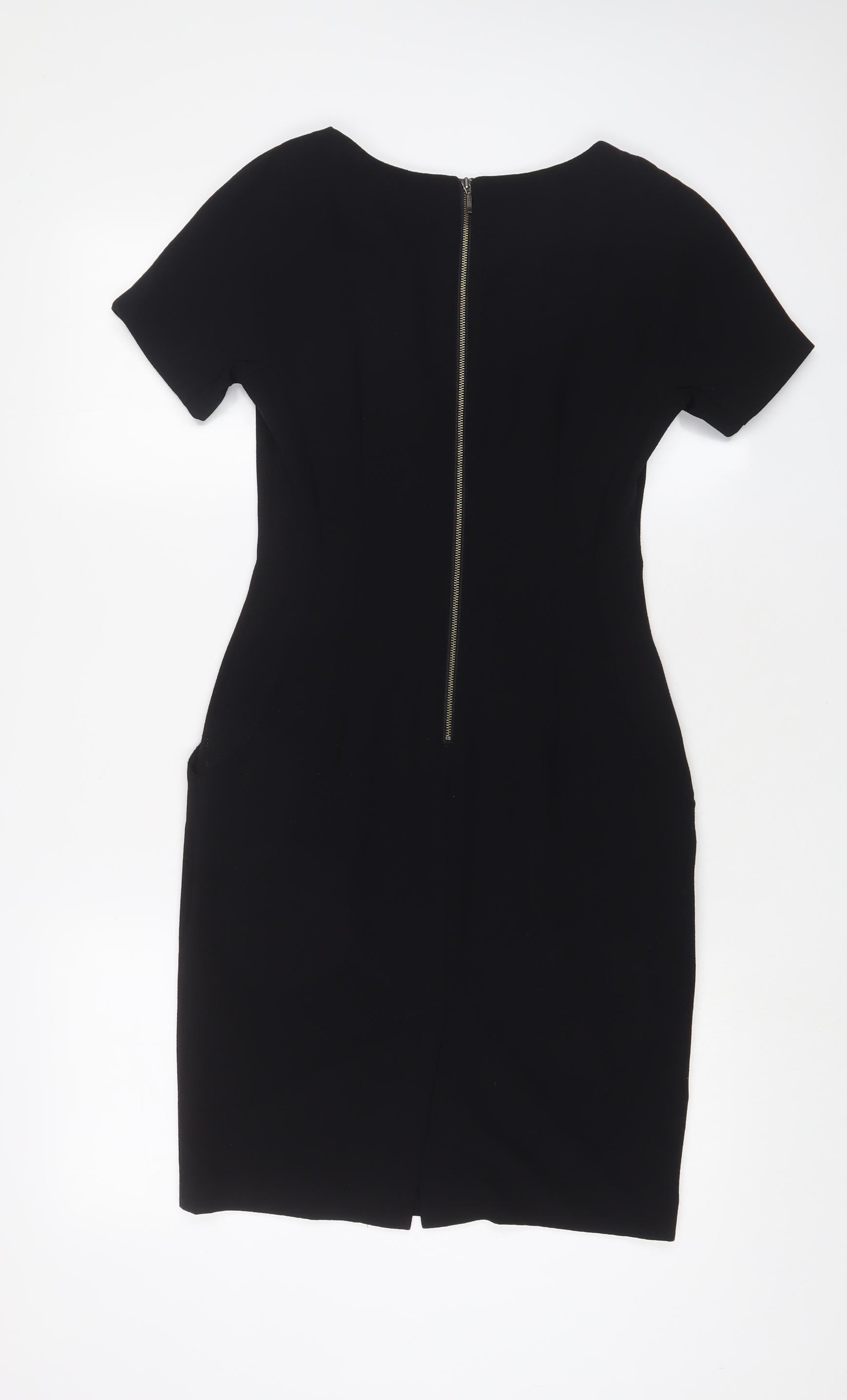 NEXT Womens Black Polyester Bodycon Size 6 Boat Neck Zip