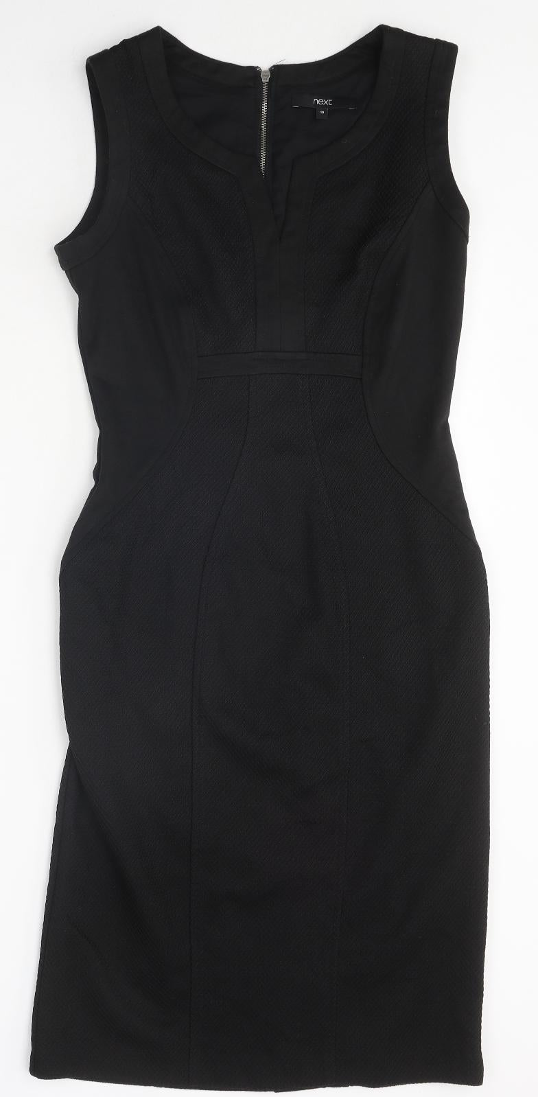 NEXT Womens Black Polyester Pencil Dress Size 10 V-Neck Zip