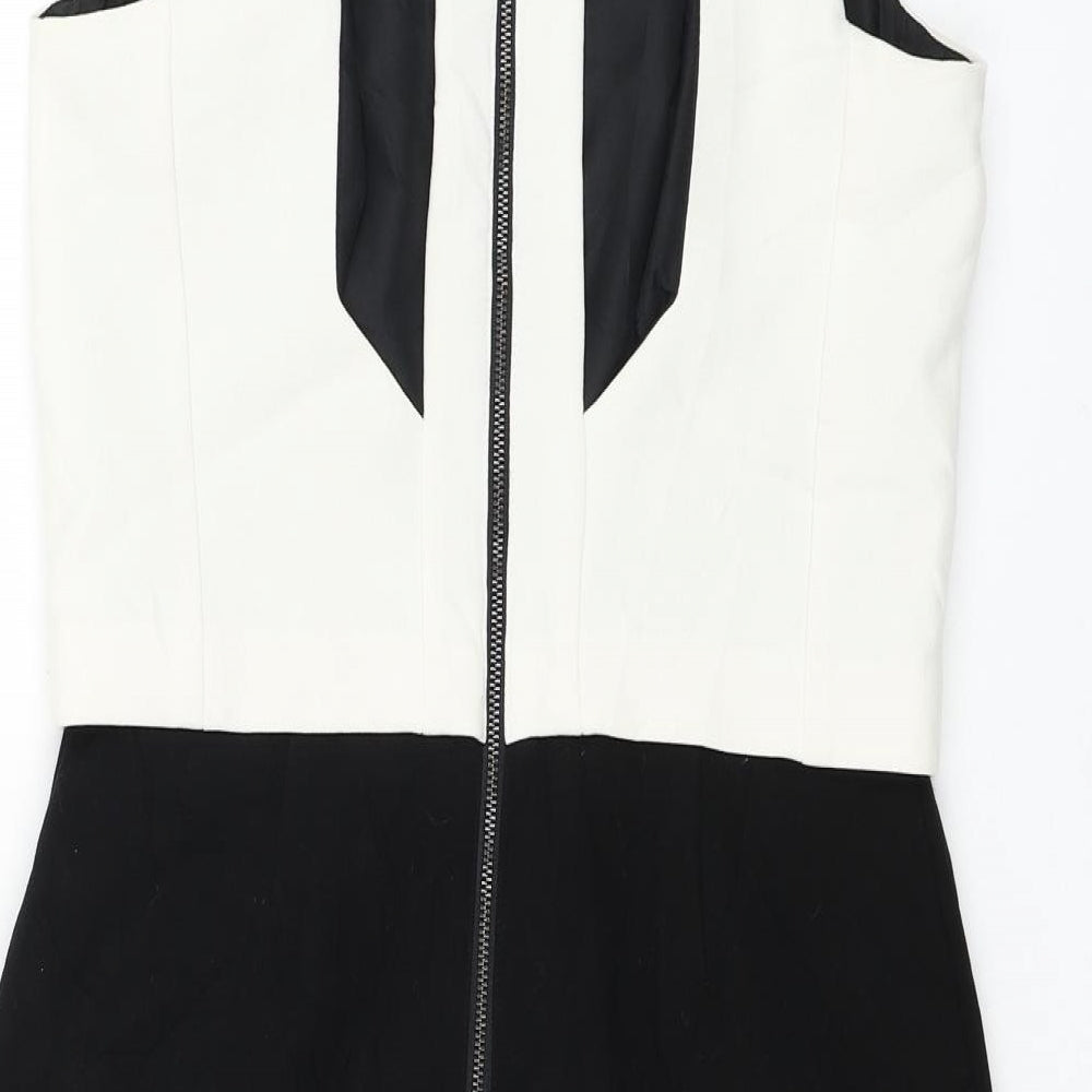 NEXT Womens Black Polyester Pencil Dress Size 8 Round Neck Zip