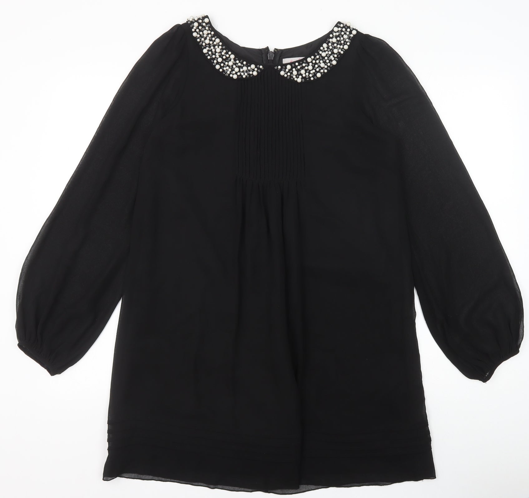 NEXT Womens Black Polyester Shift Size 10 Collared Zip