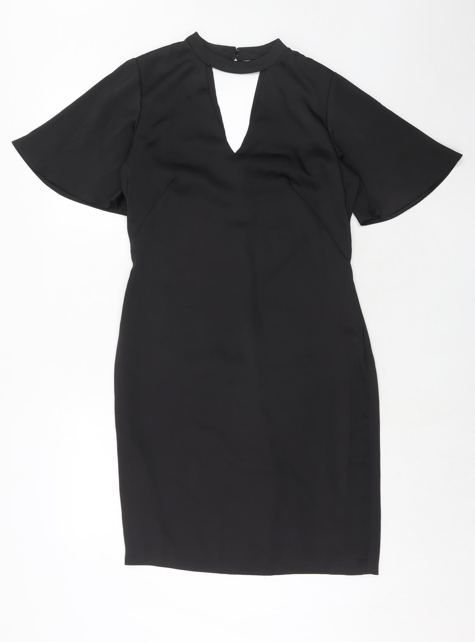NEXT Womens Black Polyester Shift Size 10 Halter Hook & Eye