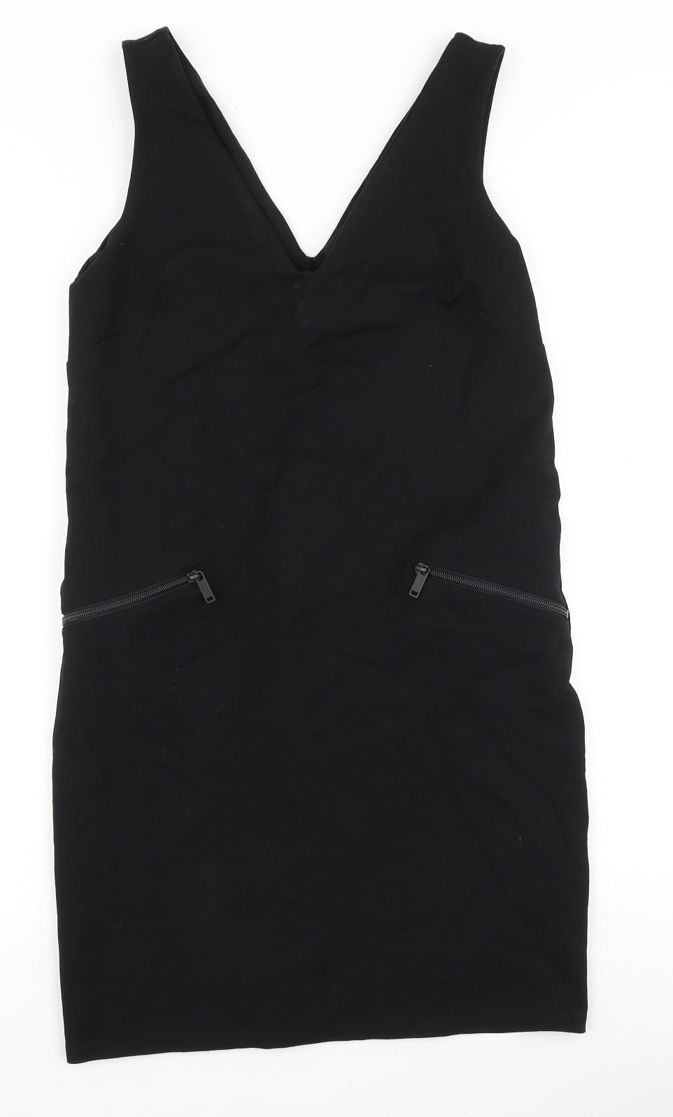 NEXT Womens Black Polyester Tank Dress Size 10 V-Neck Zip