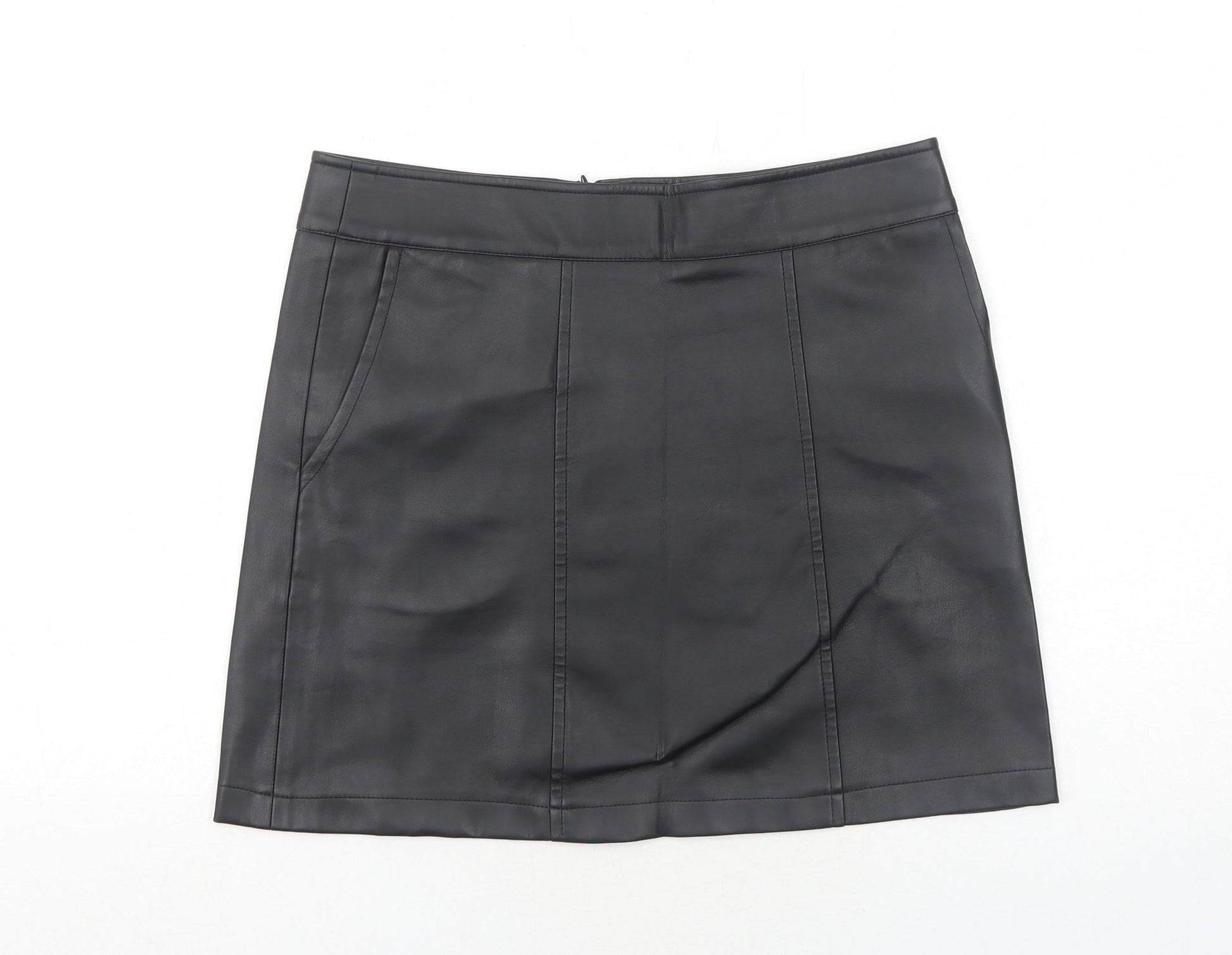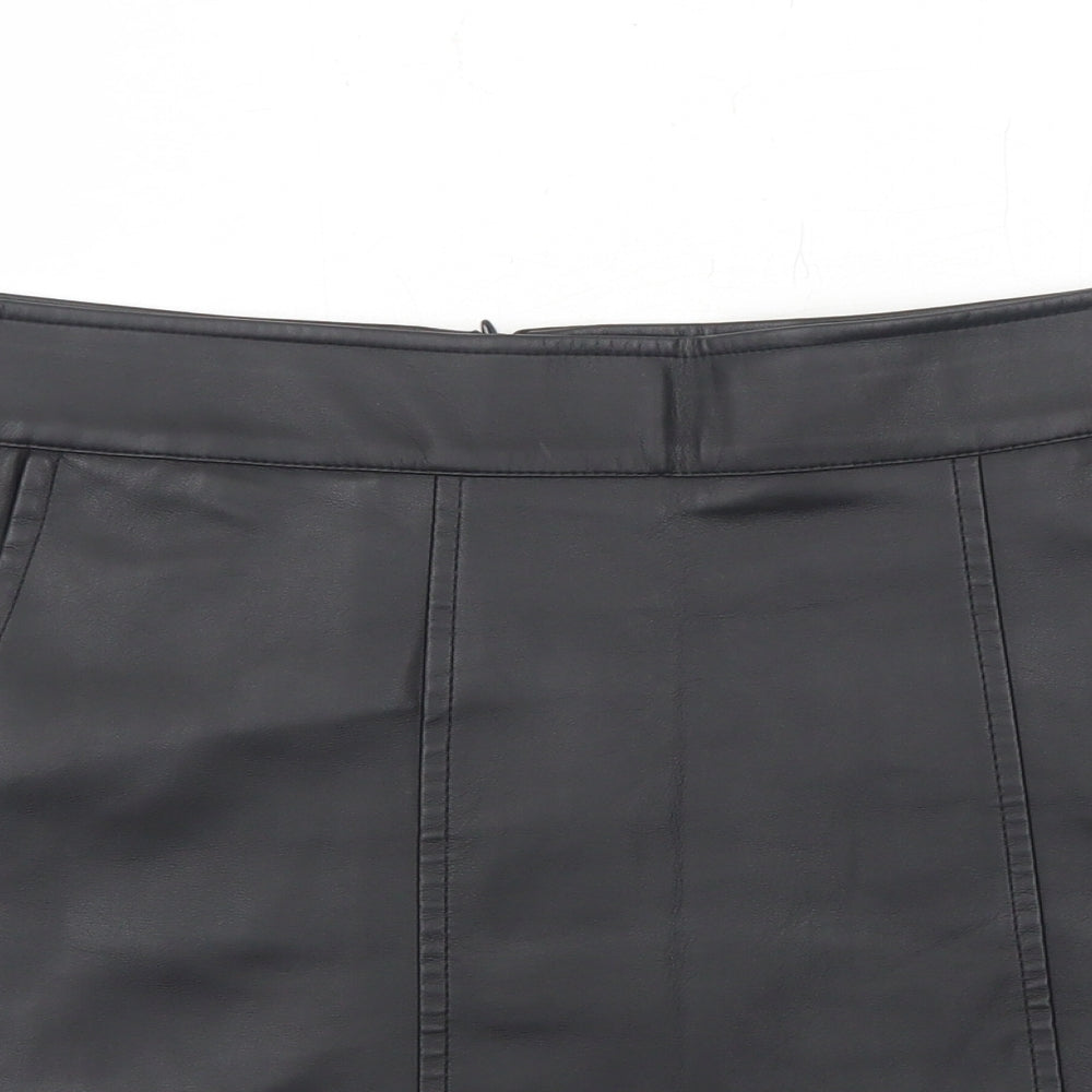 NEXT Womens Black Polyurethane A-Line Skirt Size 10 Zip