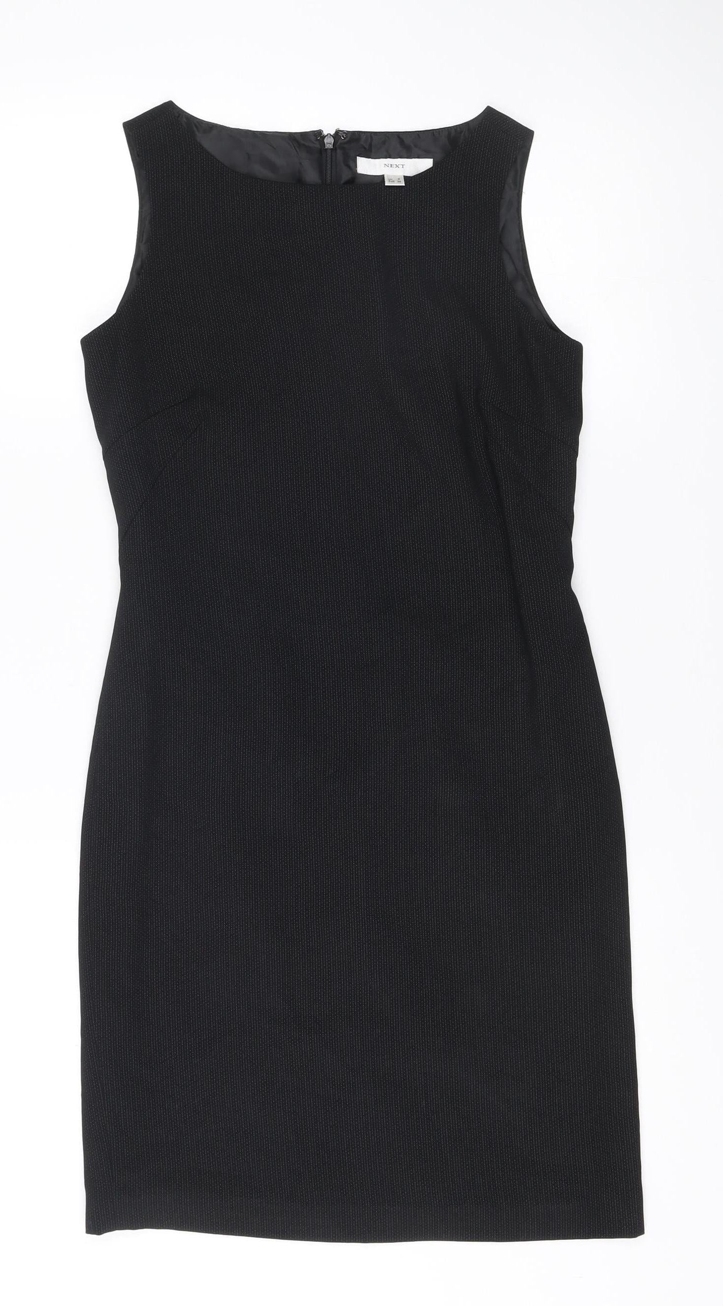 Next Womens Black Sheath Dress UK 8 Round Neck Sleeveless Workwear