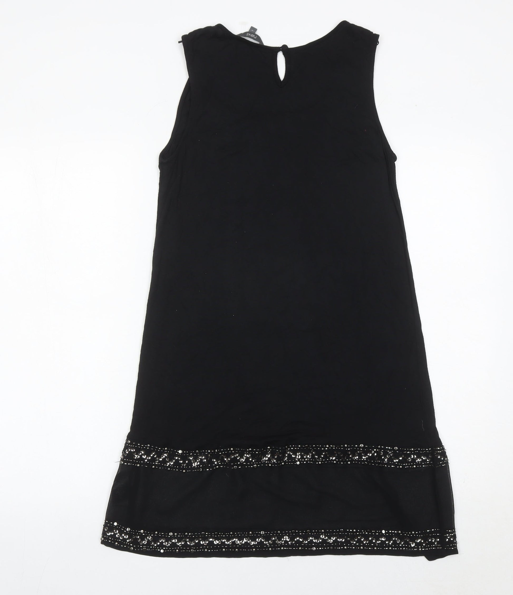Next Womens Black Size 12 Shift Embroidered Beaded Sleeveless Dress