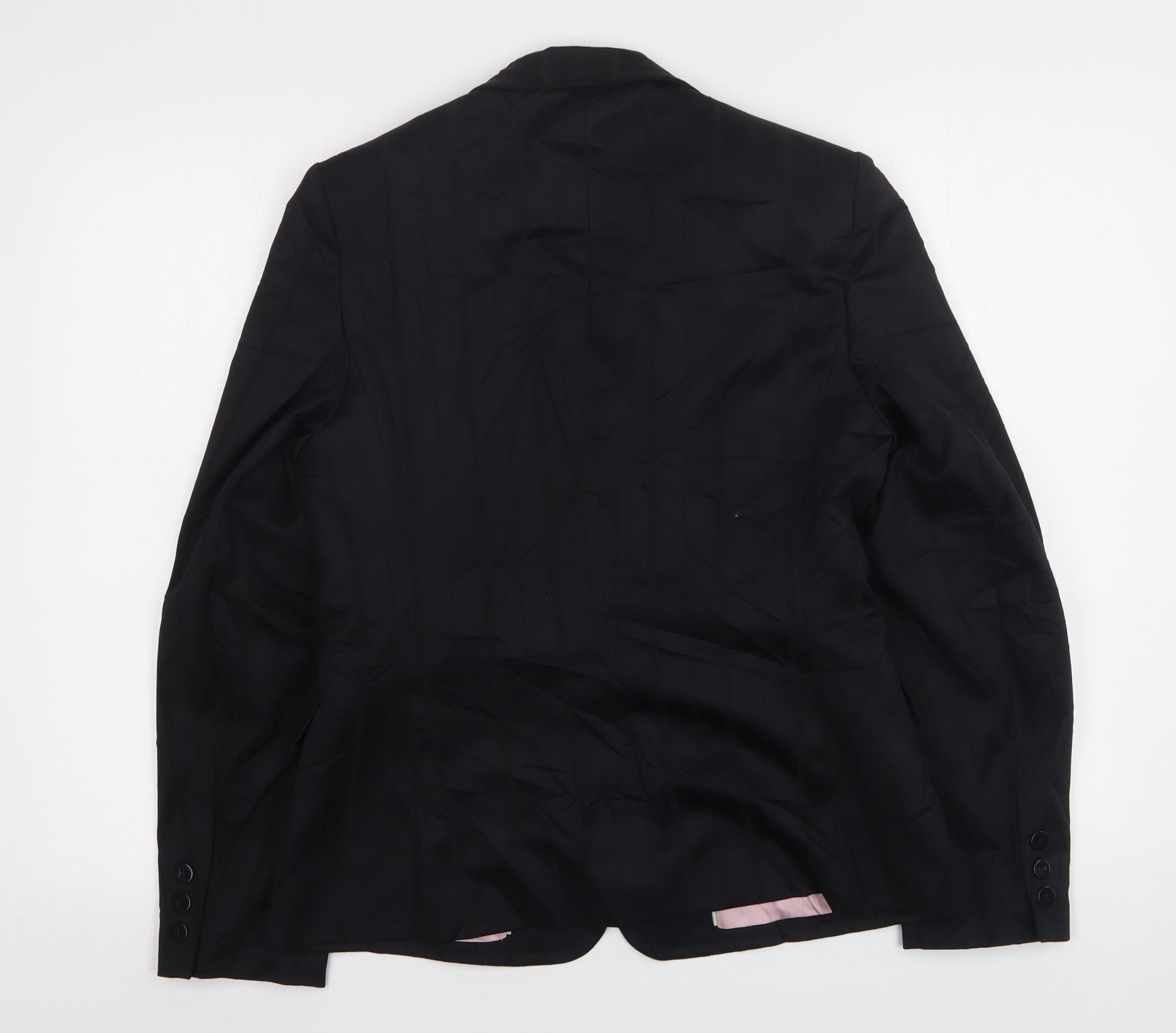 NEXT Womens Black Striped Polyester Jacket Suit Jacket Size 12