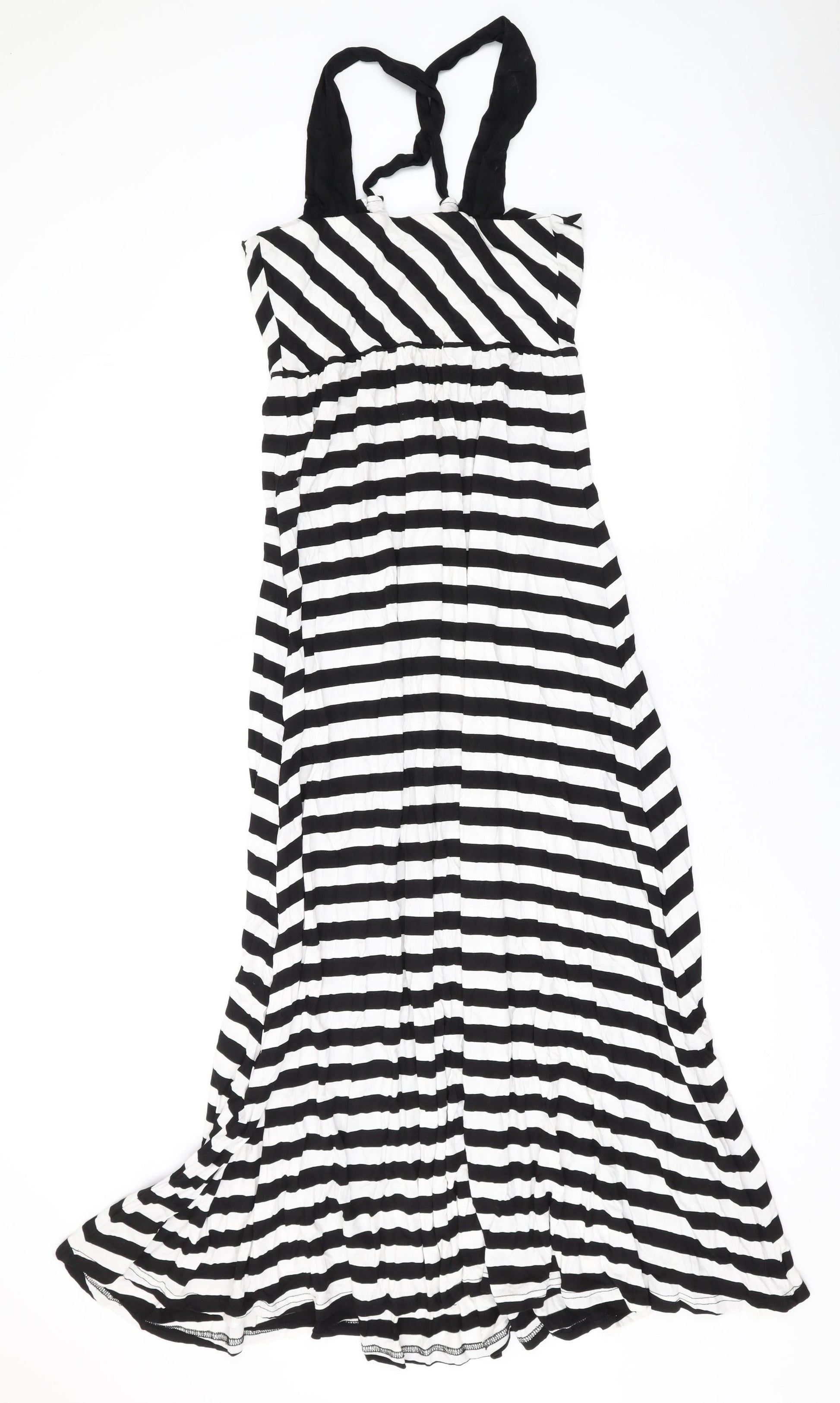 NEXT Womens Black Striped Viscose Maxi Size 10 Halter Pullover