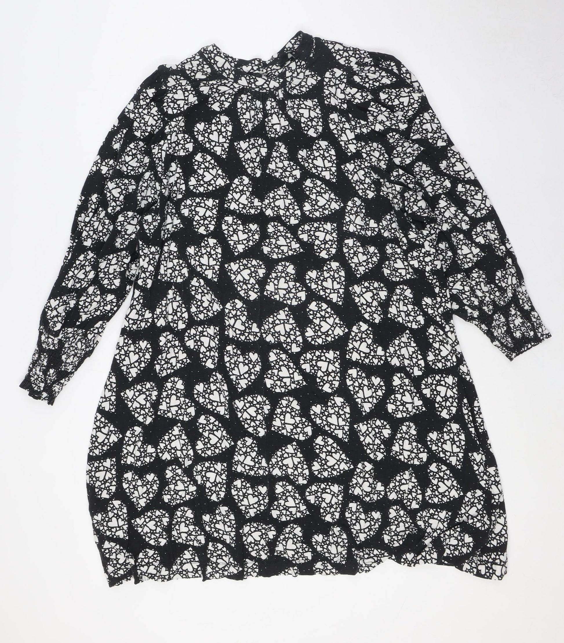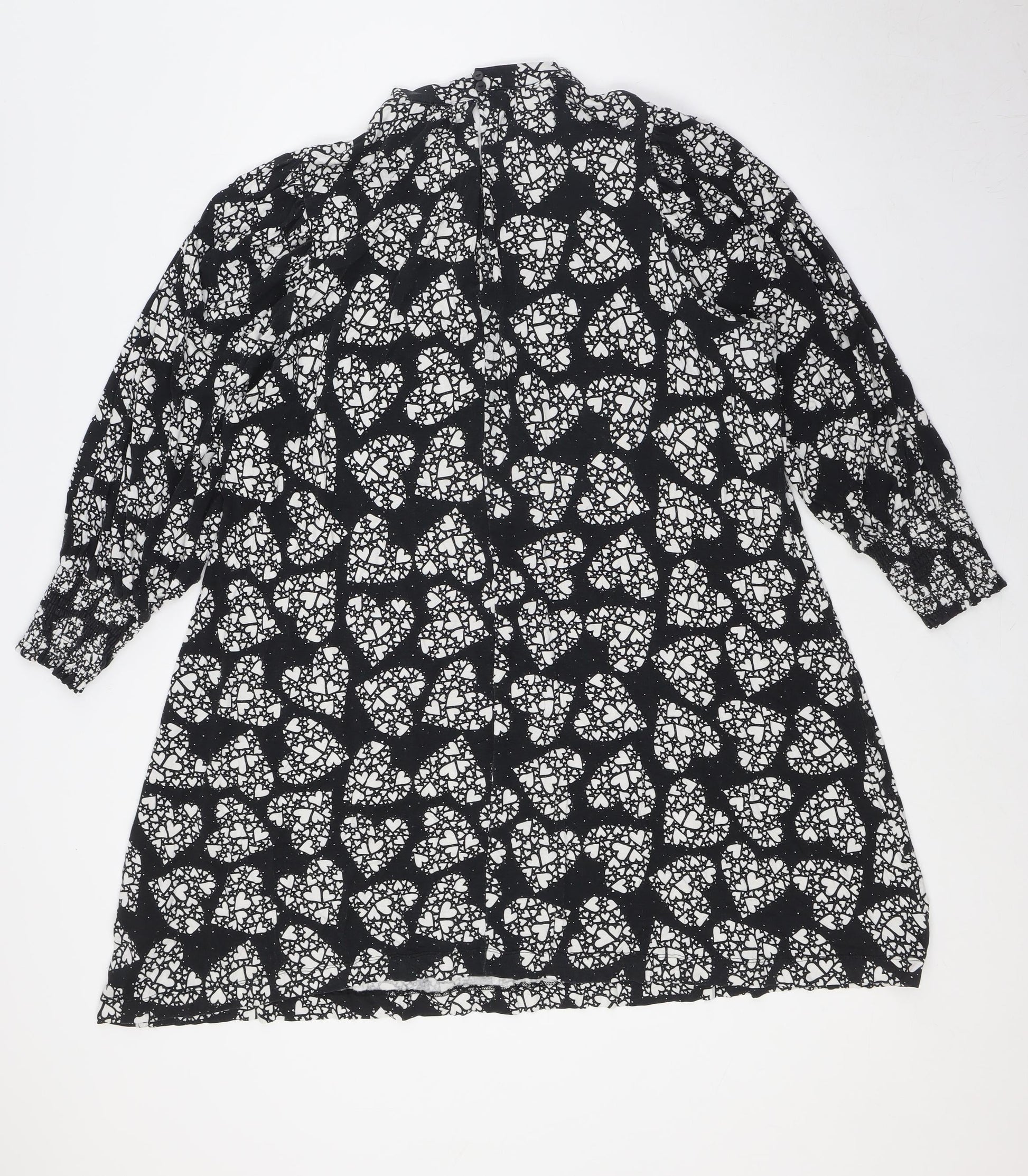 NEXT Womens Black Viscose A-Line Size 18 Mock Neck Button - Hearts