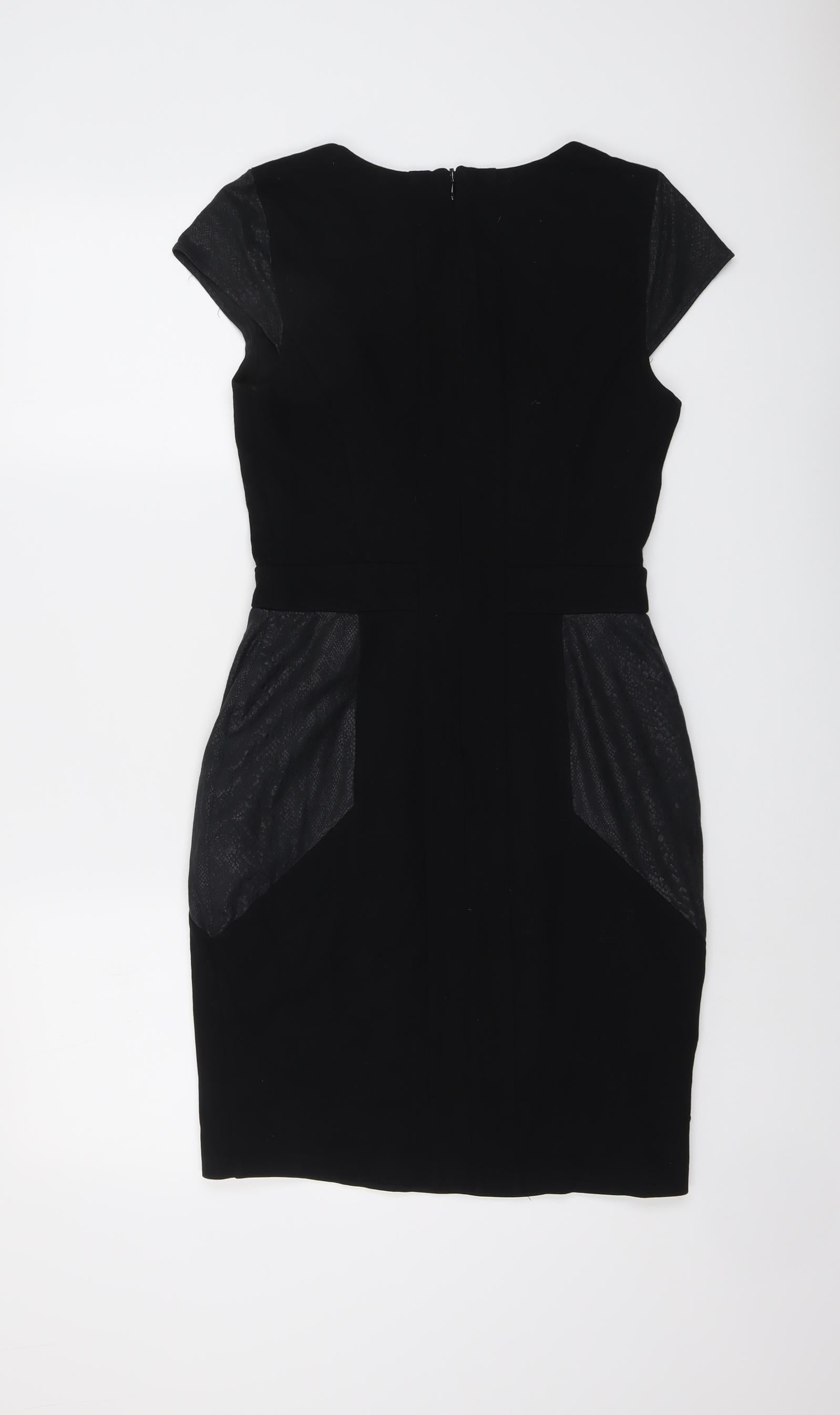 NEXT Womens Black Viscose Shift Size 8 Round Neck Zip - Snakeskin texture