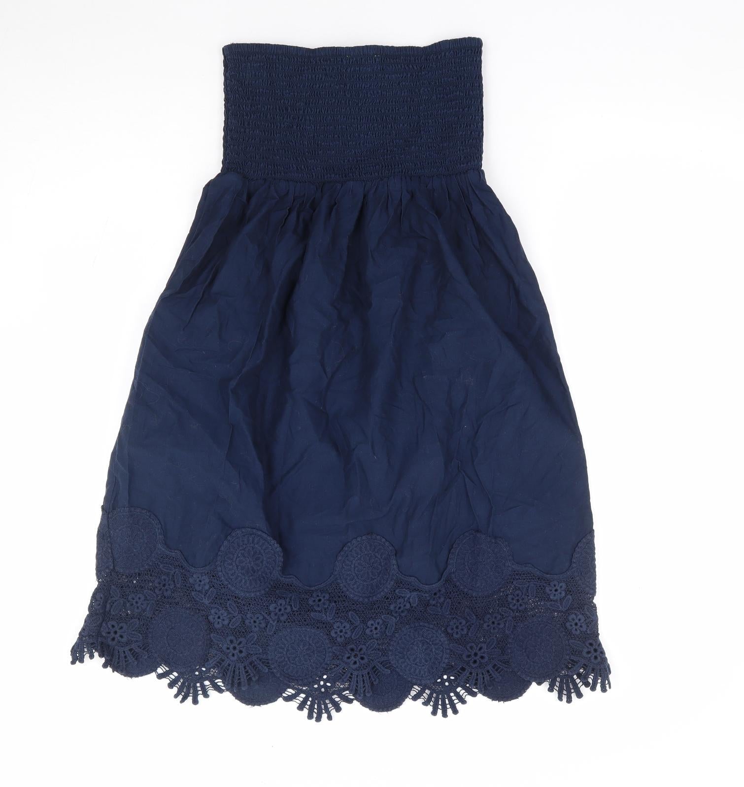 NEXT Womens Blue 100% Cotton A-Line Size 6 Off the Shoulder Pullover - Embellished Hem