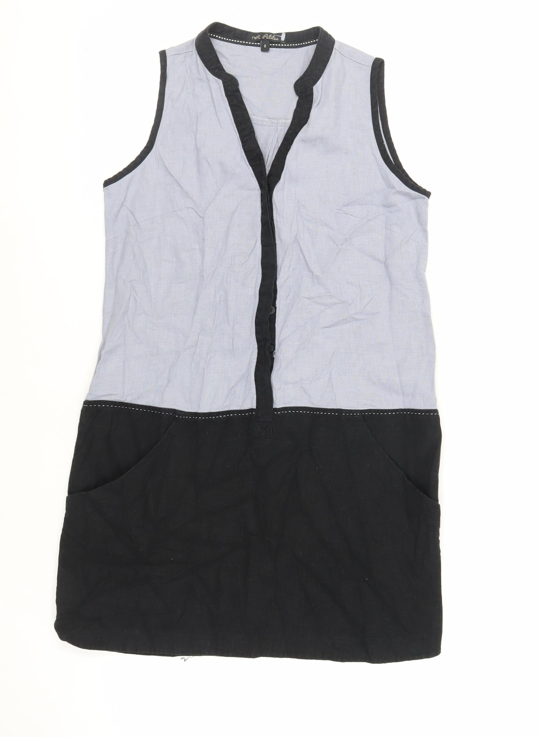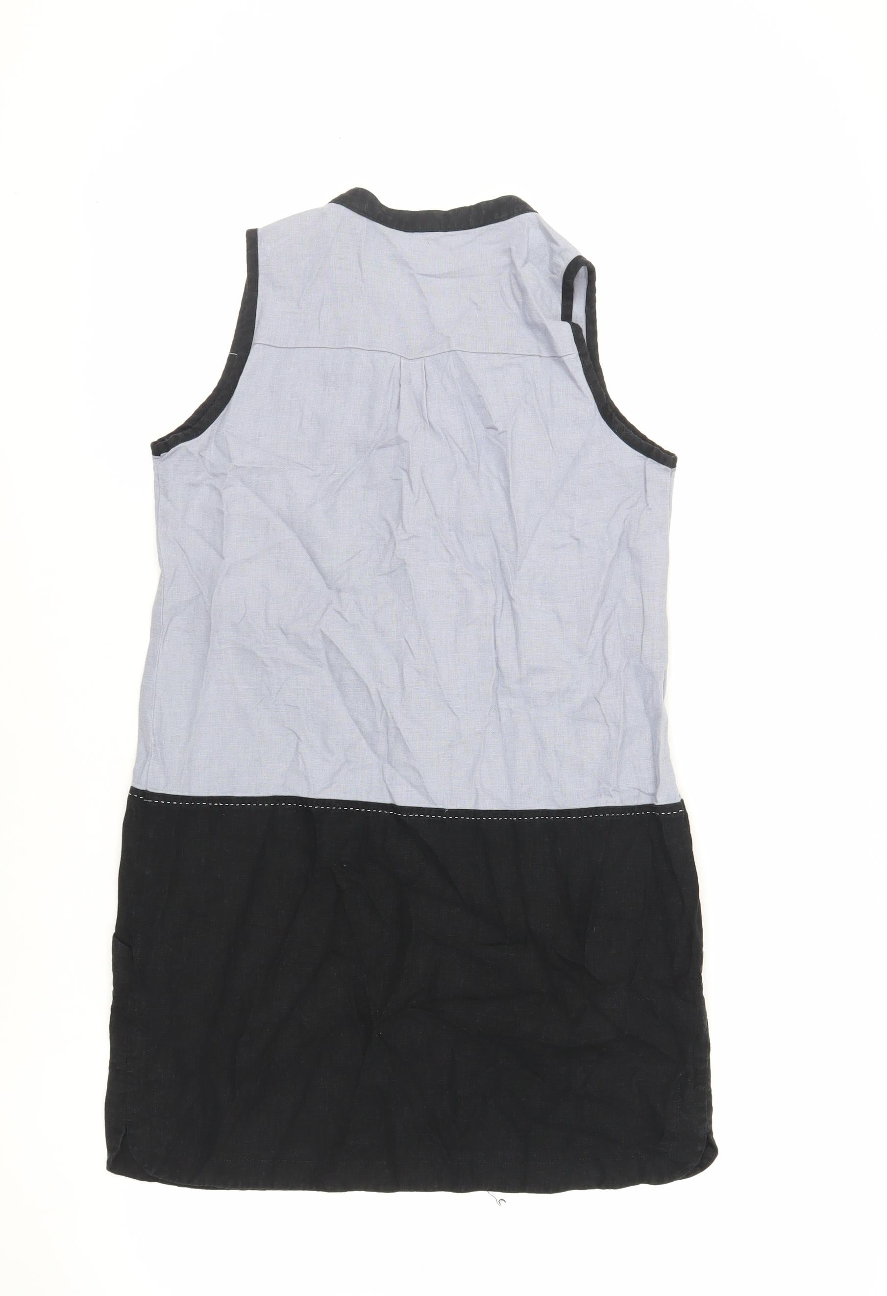 NEXT Womens Blue Colourblock Linen Sheath Size 8 V-Neck Pullover - Pockets