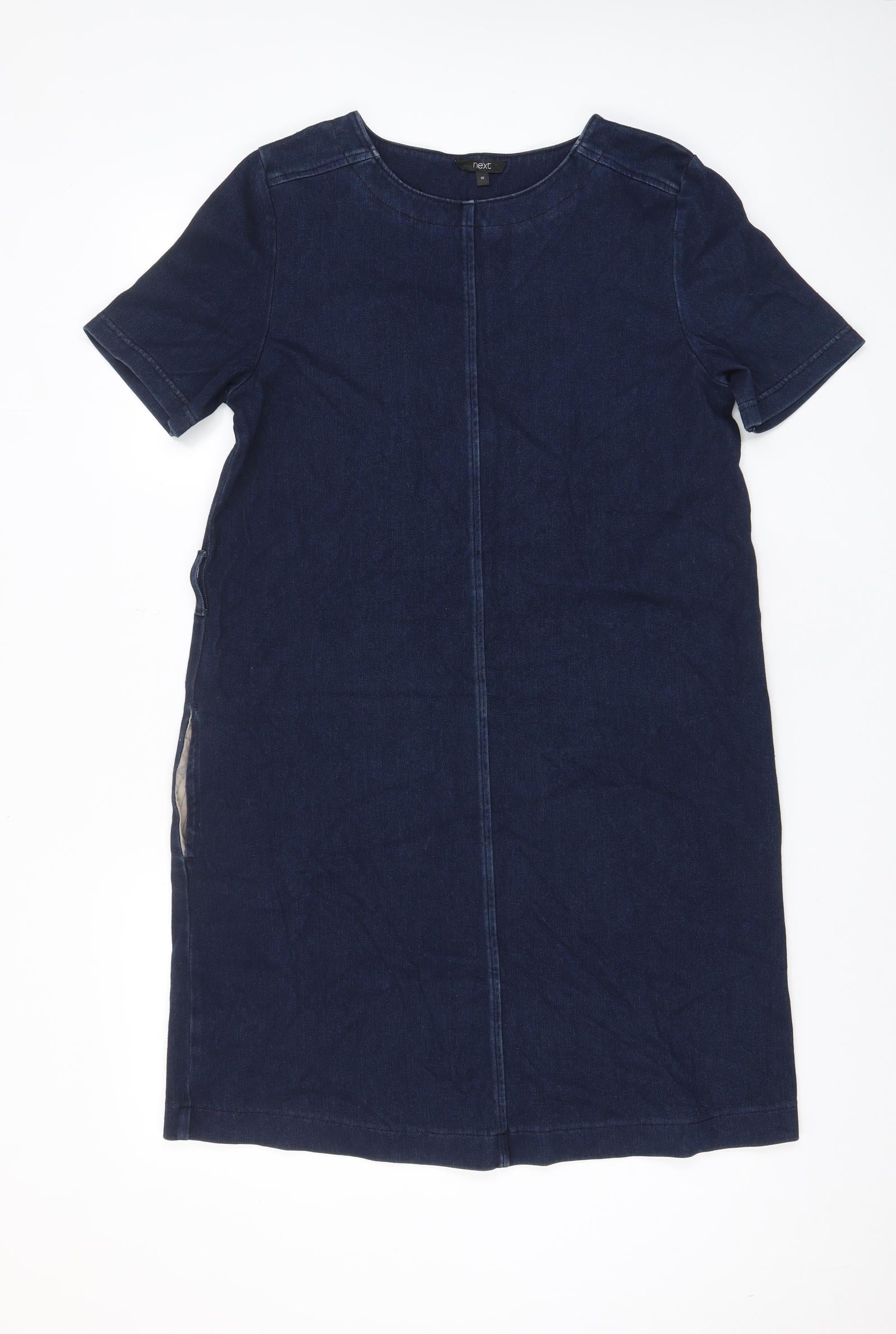 NEXT Womens Blue Cotton A-Line Size 10 Boat Neck Pullover - Pockets