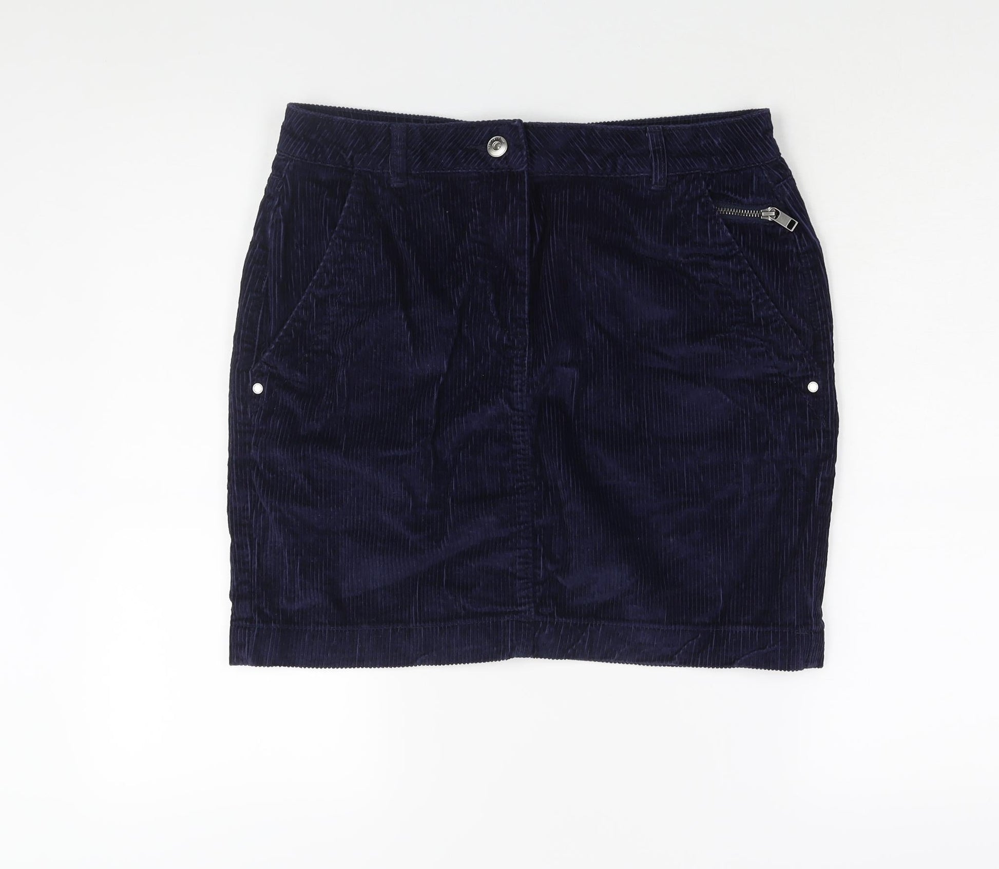 NEXT Womens Blue Cotton Mini Skirt Size 12 Zip
