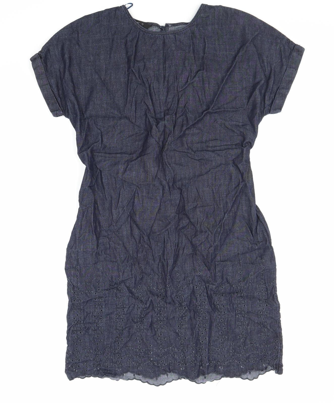 NEXT Womens Blue Cotton Shift Size 12 Round Neck Button