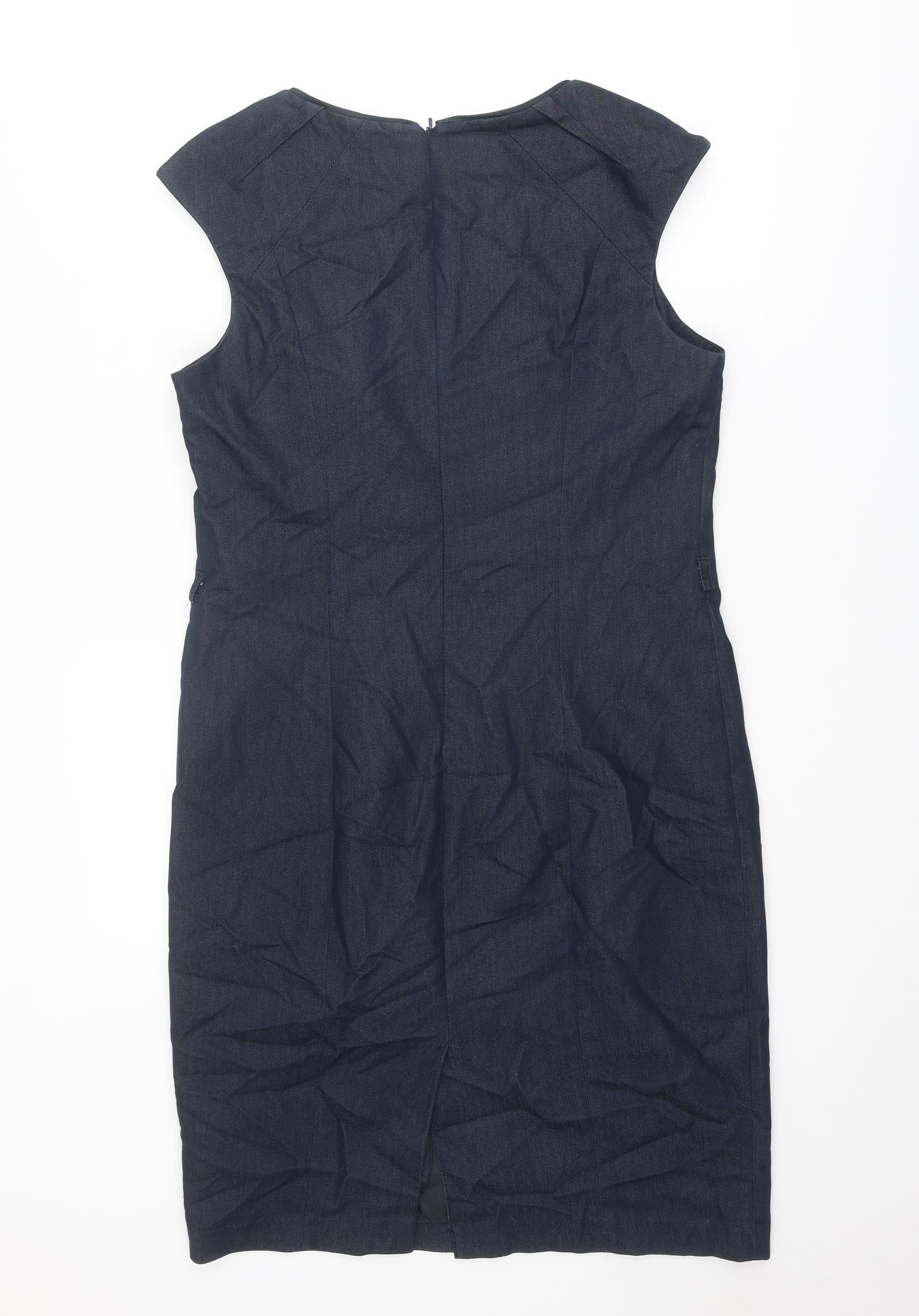 NEXT Womens Blue Cotton Shift Size 14 Round Neck Zip