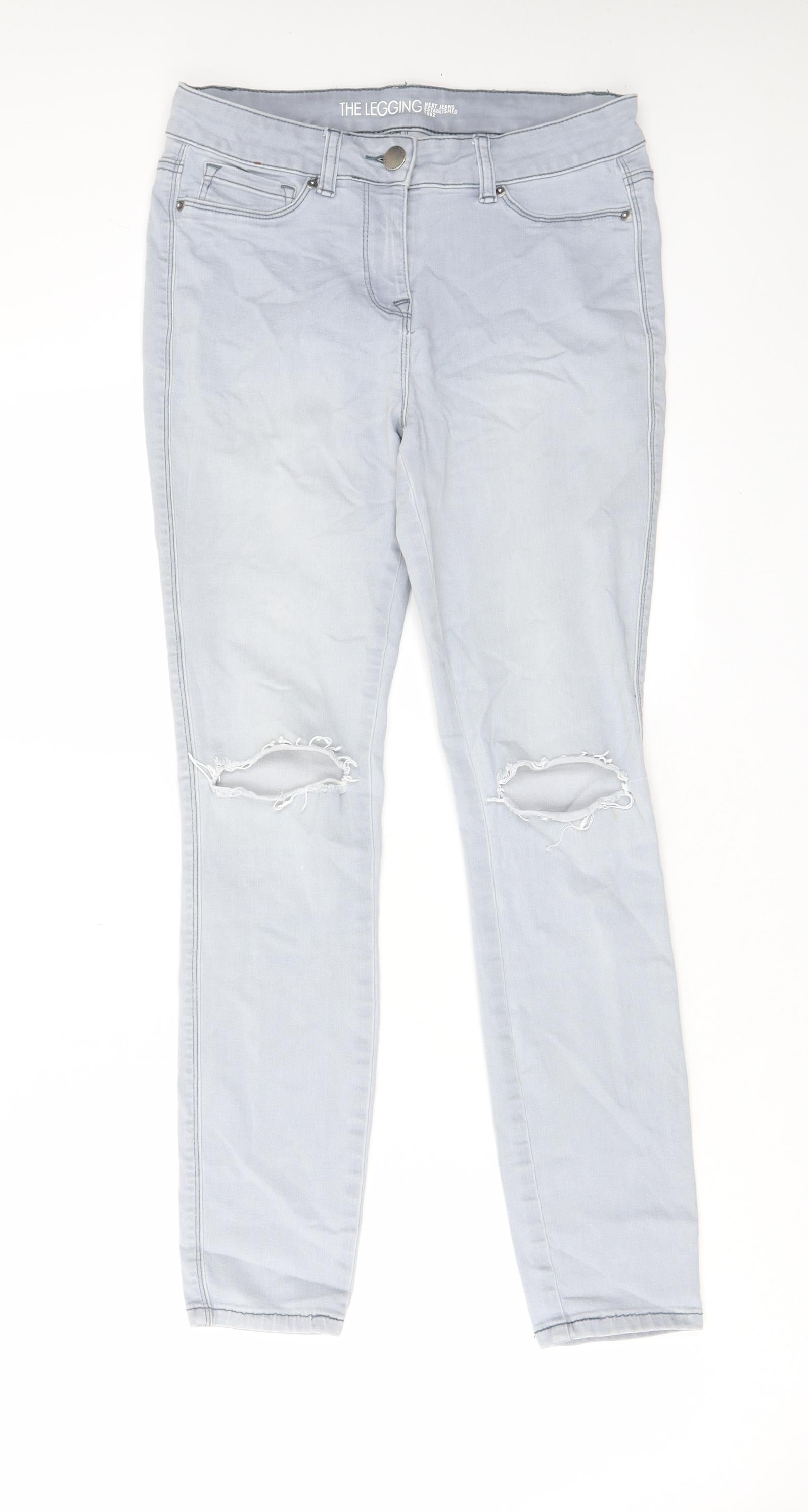 NEXT Womens Blue Cotton Skinny Jeans Size 10 L26 in Regular Zip - Open knee, Pockets, Belt Loops