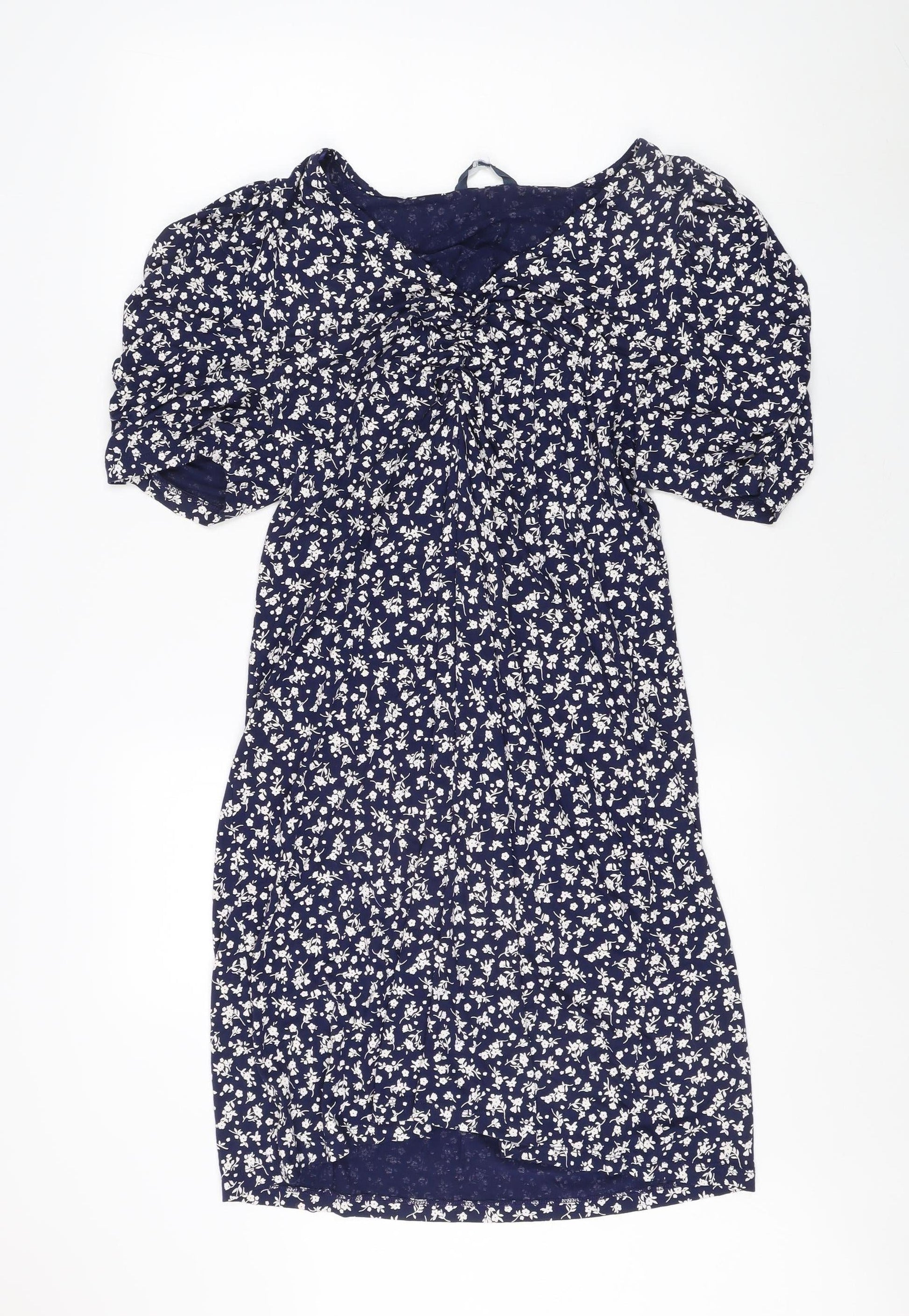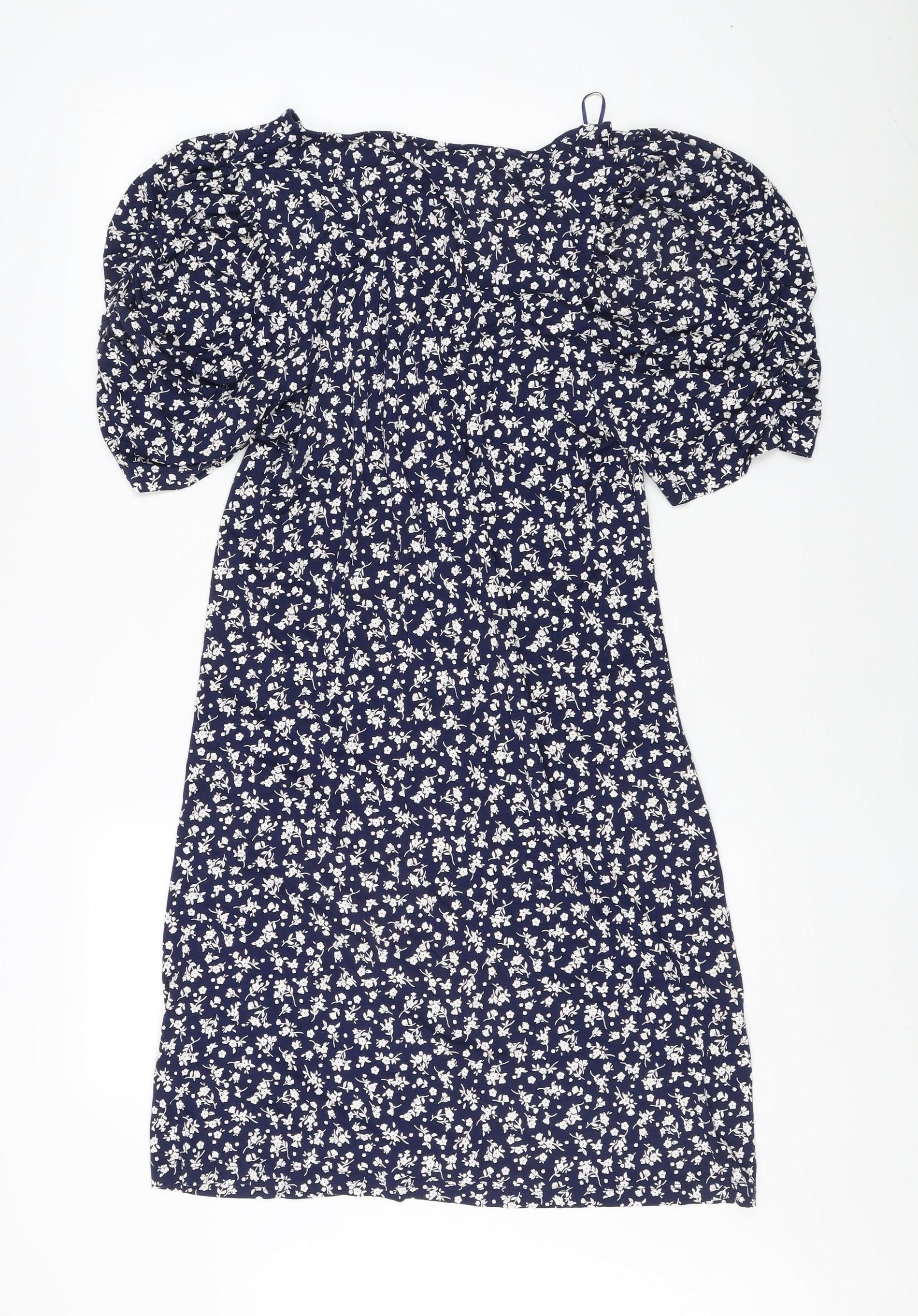 Next Women's Blue Floral A-Line Puff Sleeve Dress