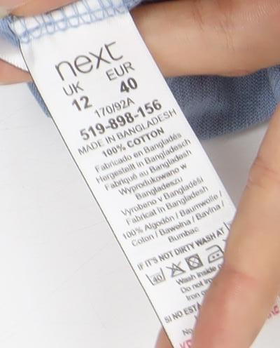 Next Womens Blue Floral Cotton Knee Length A-Line Dress Size 12