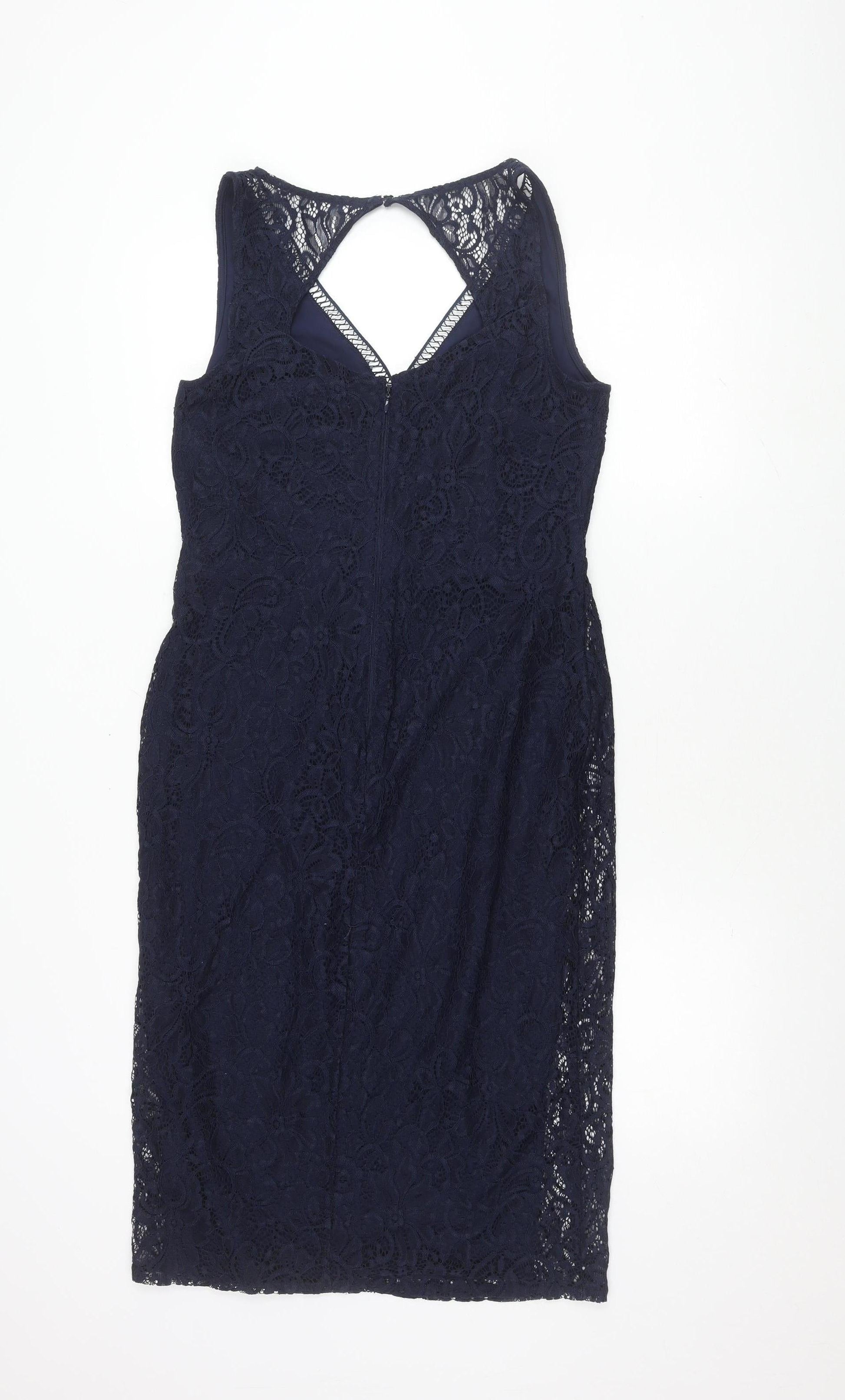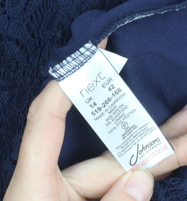 Next Women's Blue Floral Dress, Size 14, V-Neck, Lace, Sleeveless