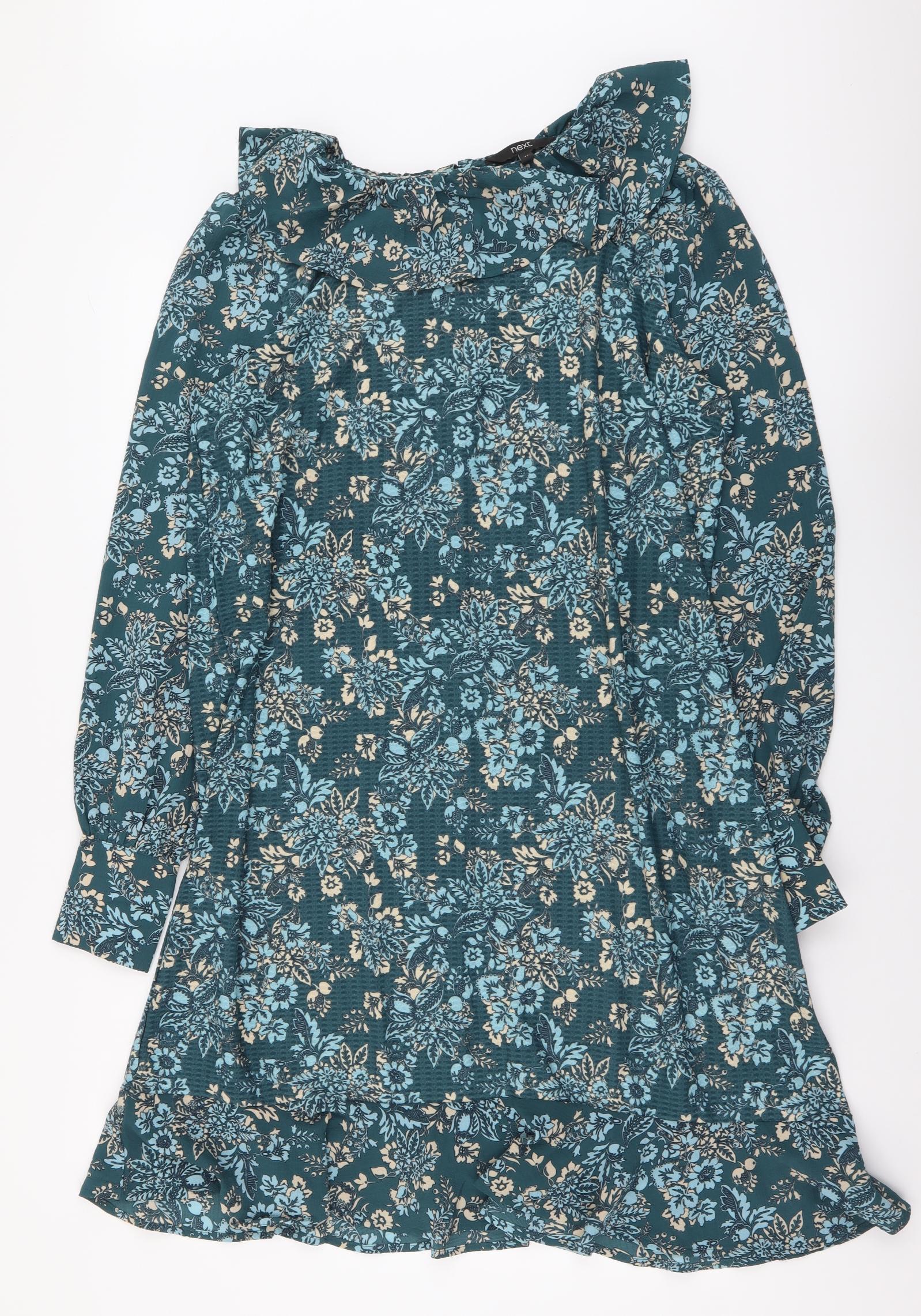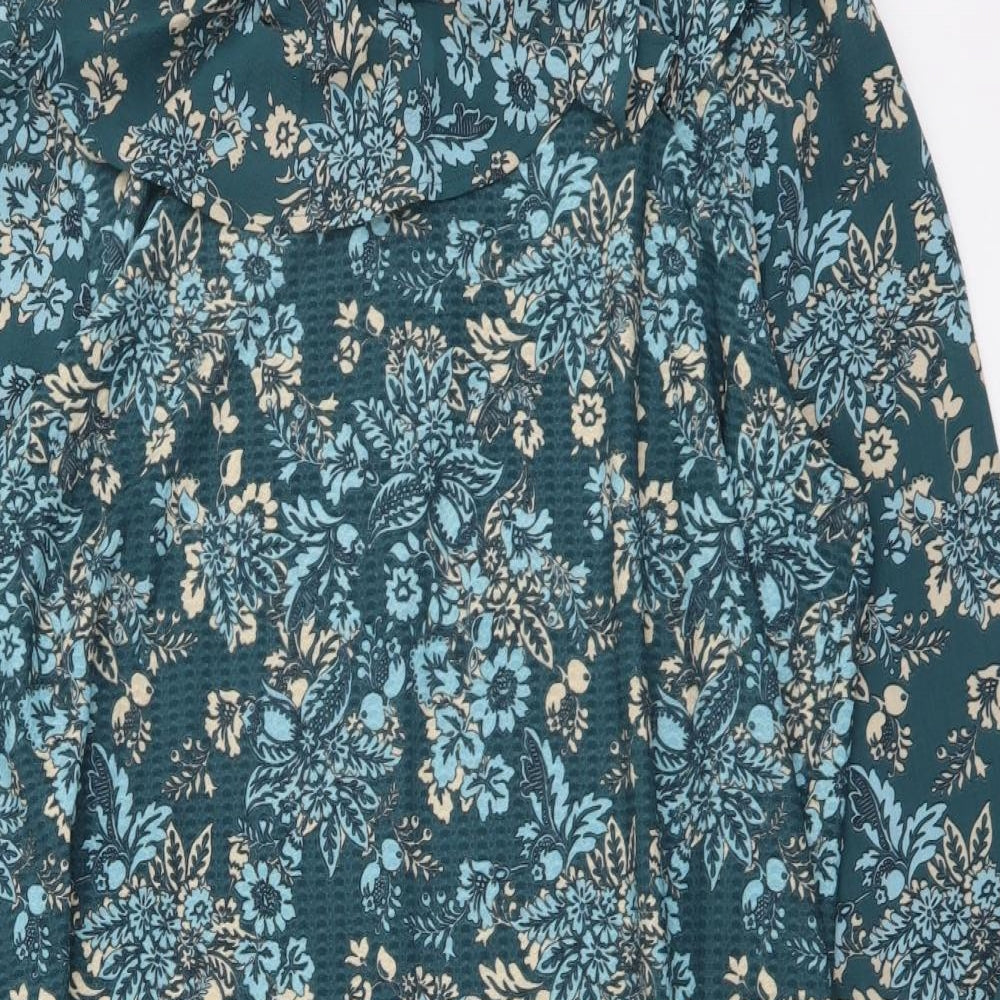 NEXT Womens Blue Floral Polyester A-Line Size 12 Collared Pullover