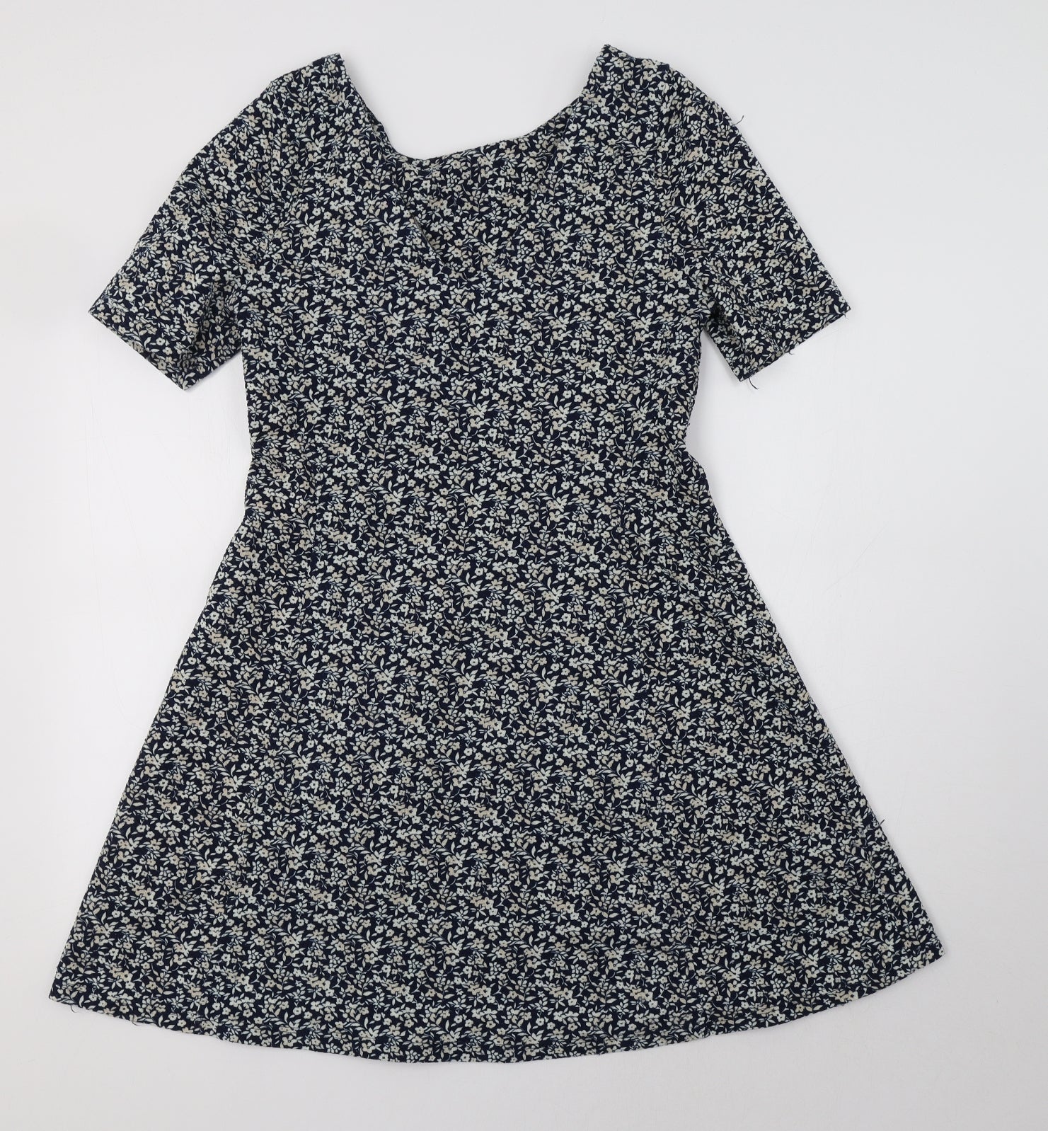 NEXT Womens Blue Floral Polyester Fit & Flare Size 12 V-Neck