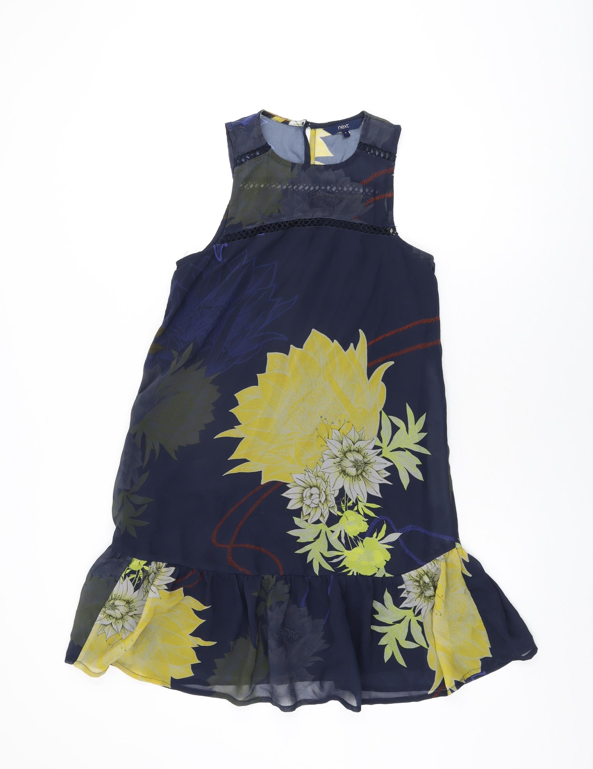 NEXT Womens Blue Floral Polyester Shift Size 6 Round Neck Button
