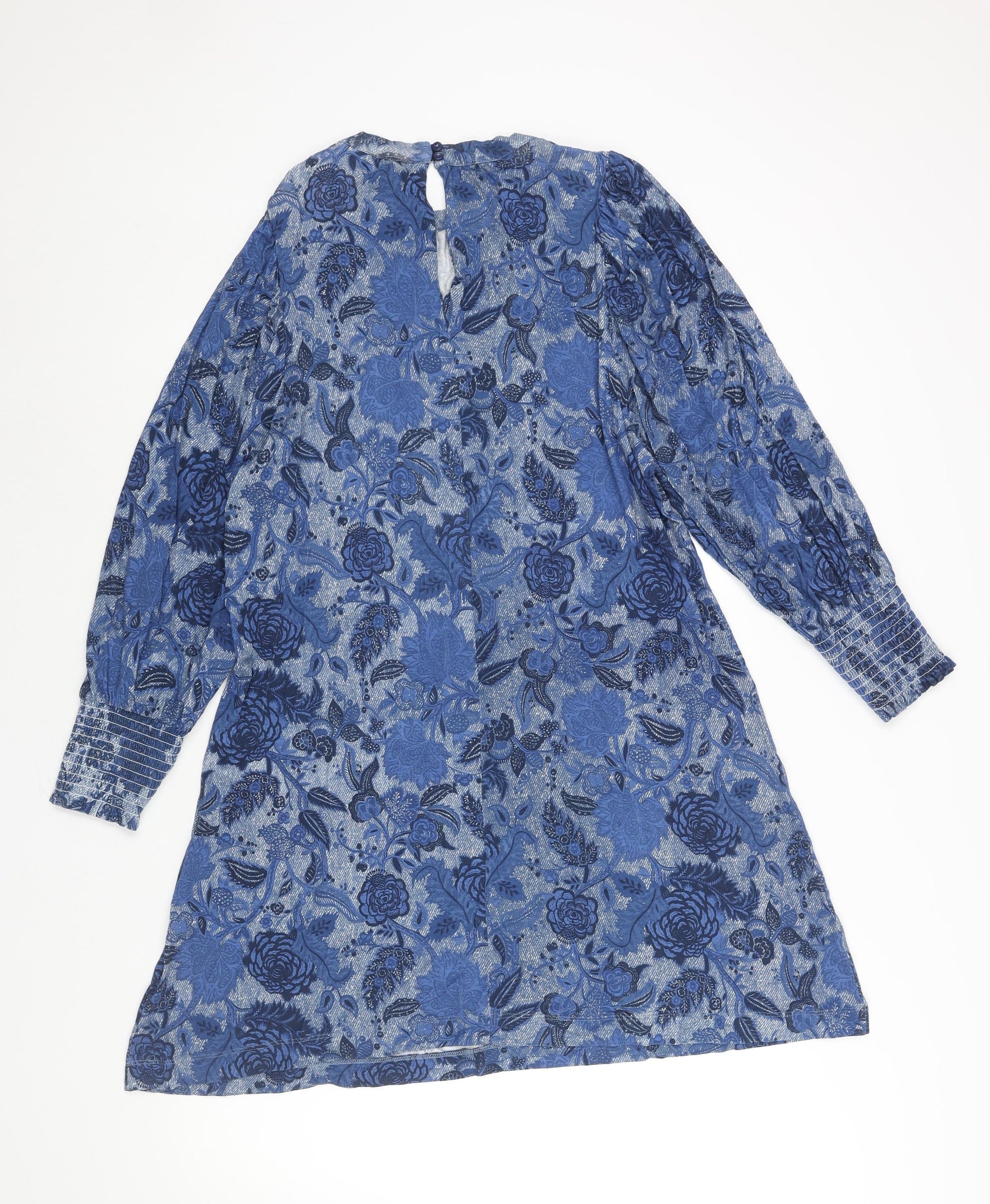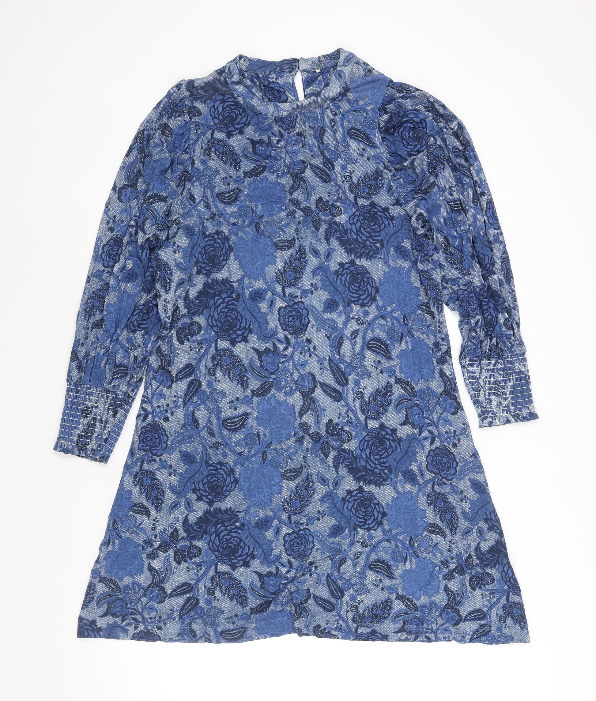 NEXT Womens Blue Floral Viscose Shift Size 12 Mock Neck Button
