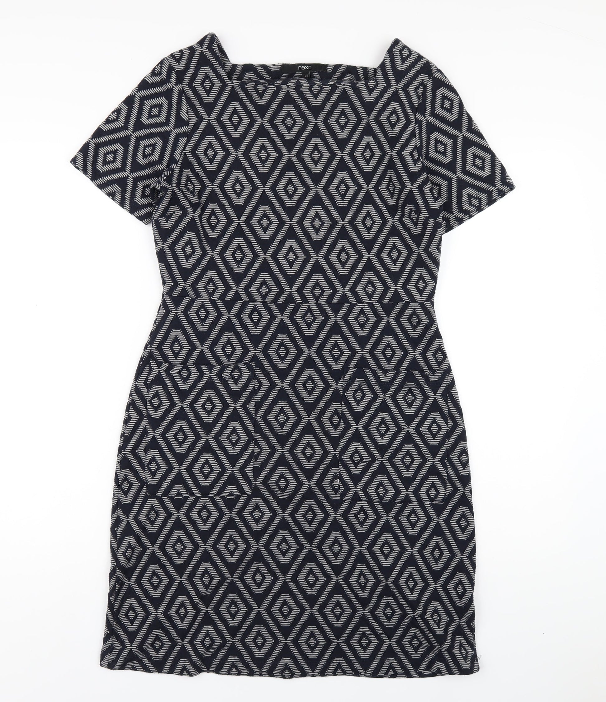 NEXT Womens Blue Geometric Polyester A-Line Size 10 Square Neck Pullover