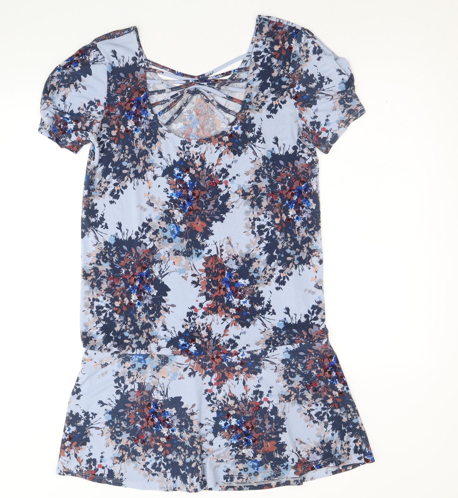 NEXT Womens Blue Geometric Polyester A-Line Size 12 Round Neck Pullover