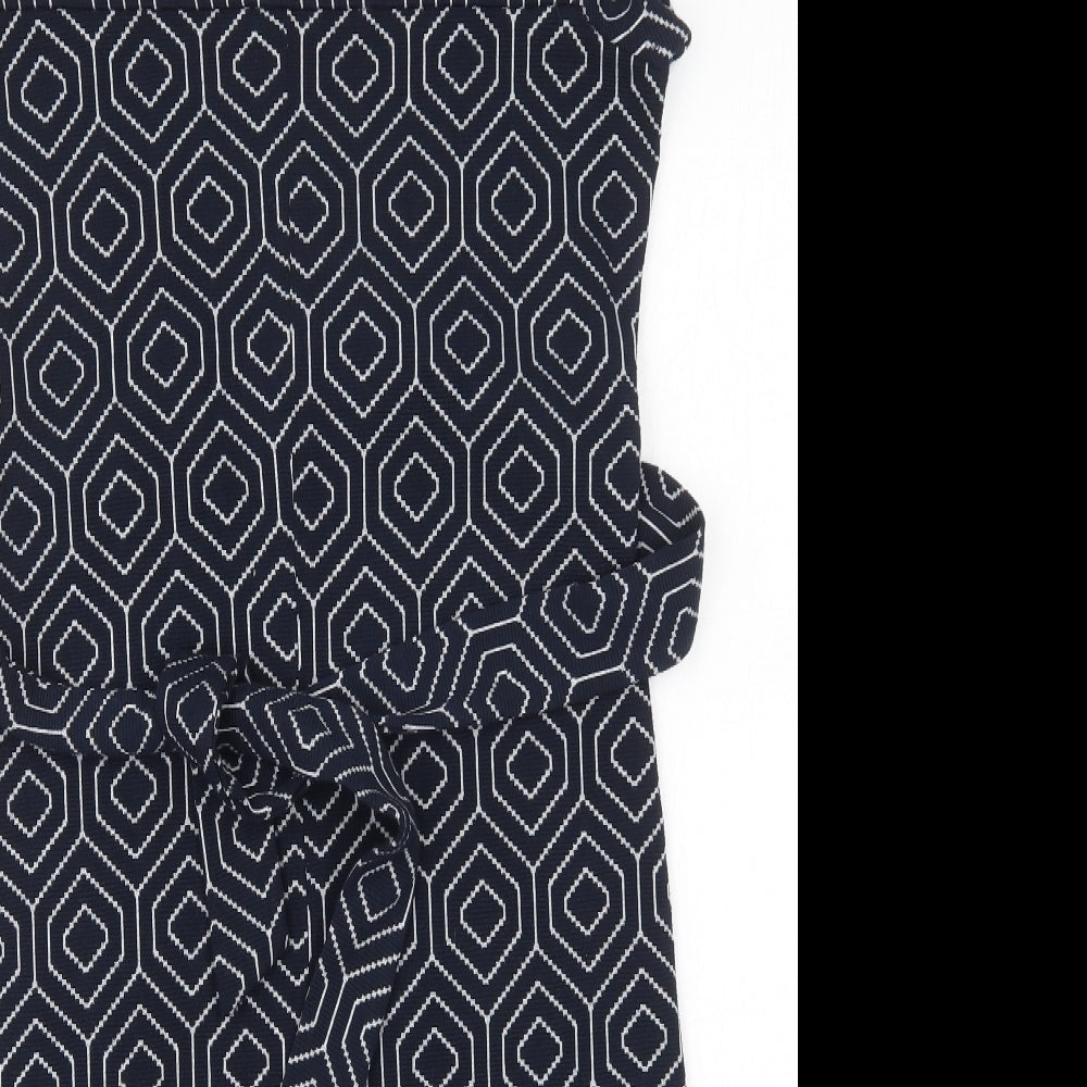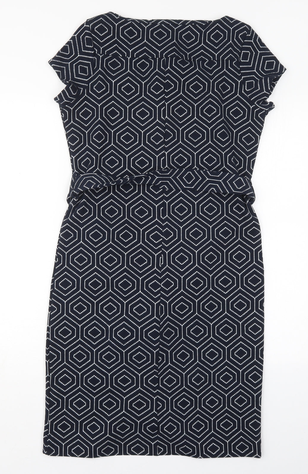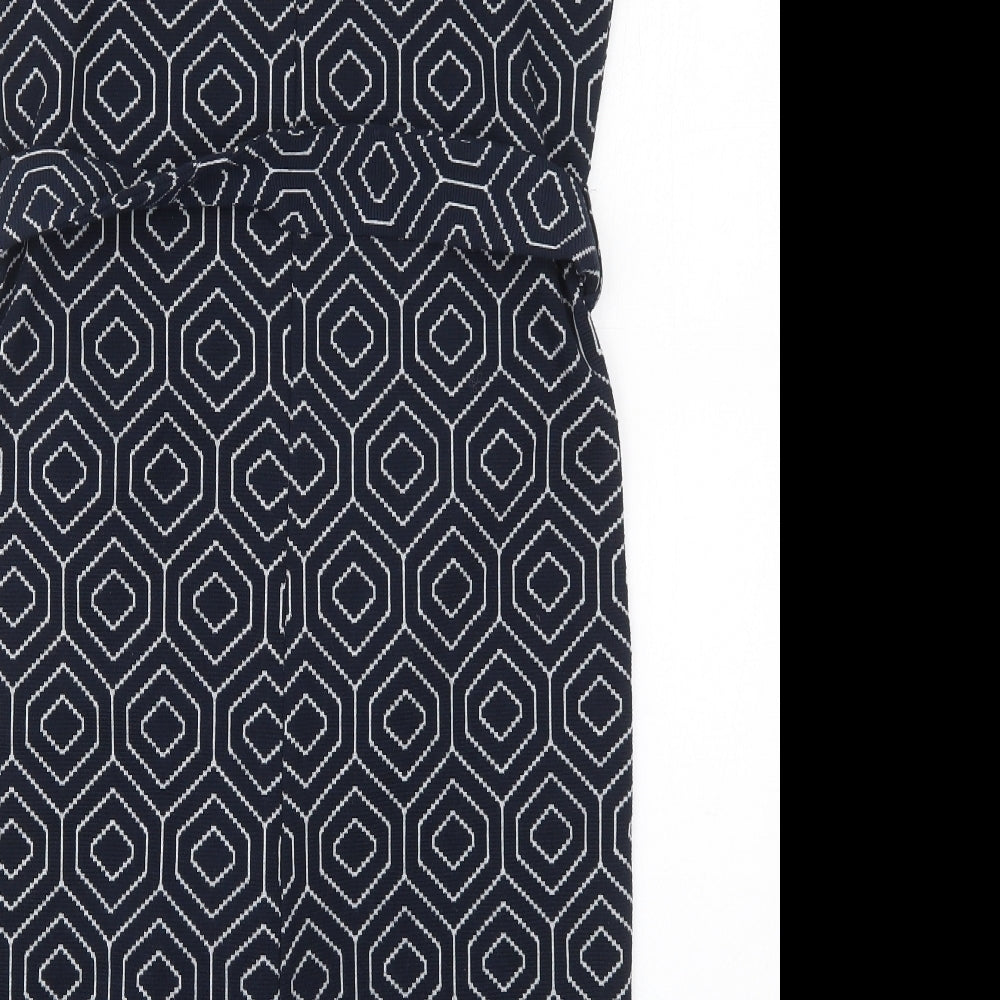 NEXT Womens Blue Geometric Polyester Pencil Dress Size 8 Square Neck Pullover