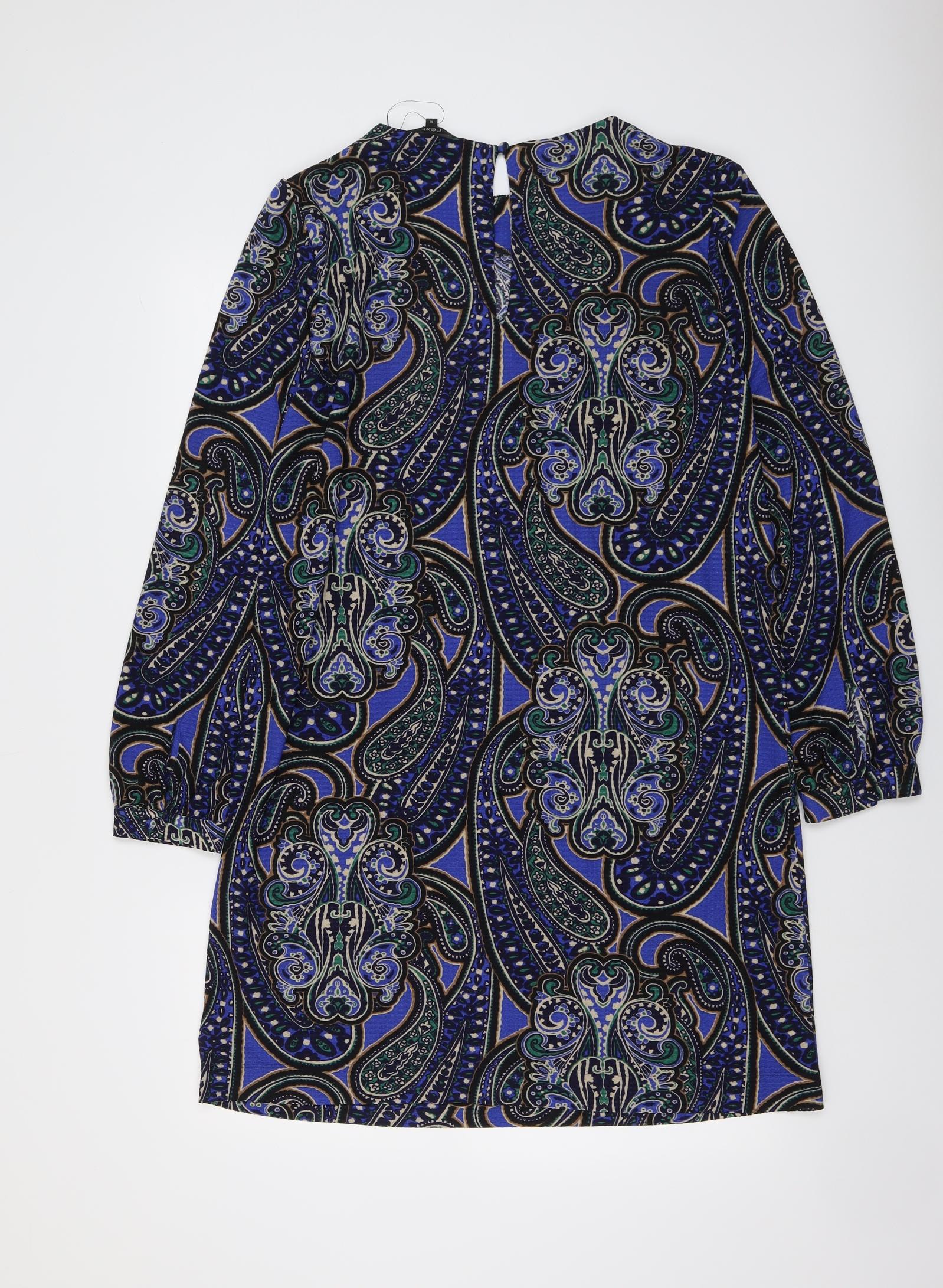 NEXT Womens Blue Geometric Polyester Sheath Size 16 Round Neck Button