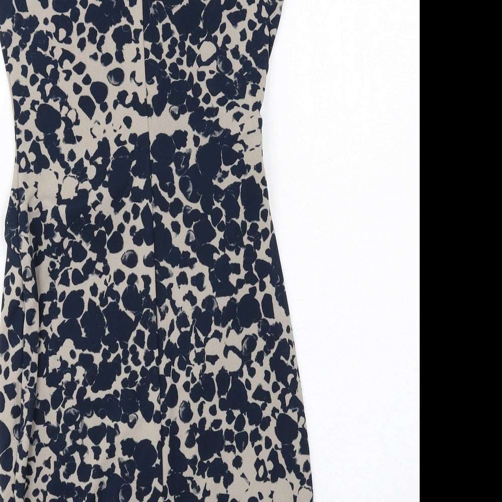 NEXT Womens Blue Geometric Polyester Shift Size 8 Round Neck Button
