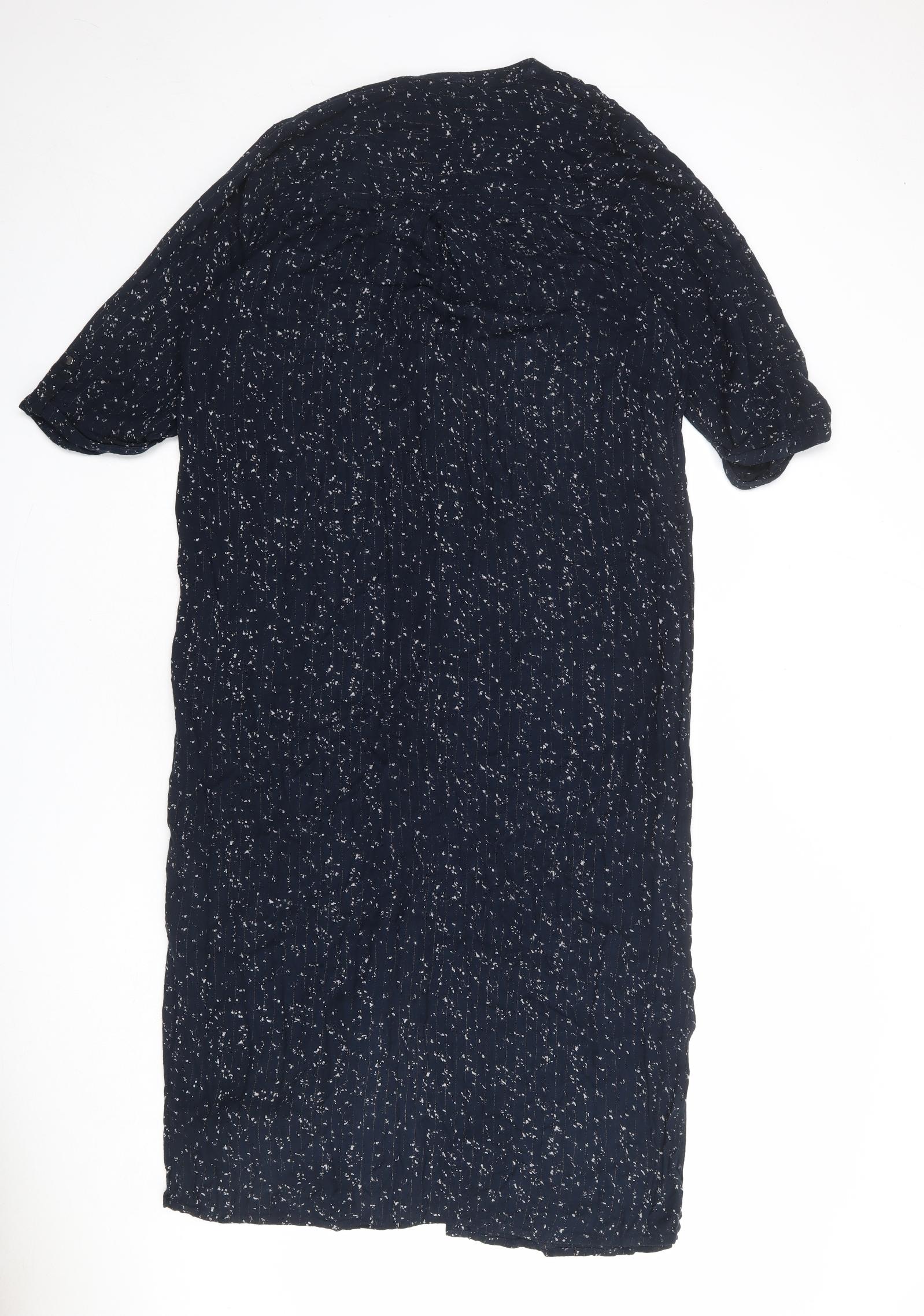NEXT Womens Blue Geometric Viscose A-Line Size 14 V-Neck Button