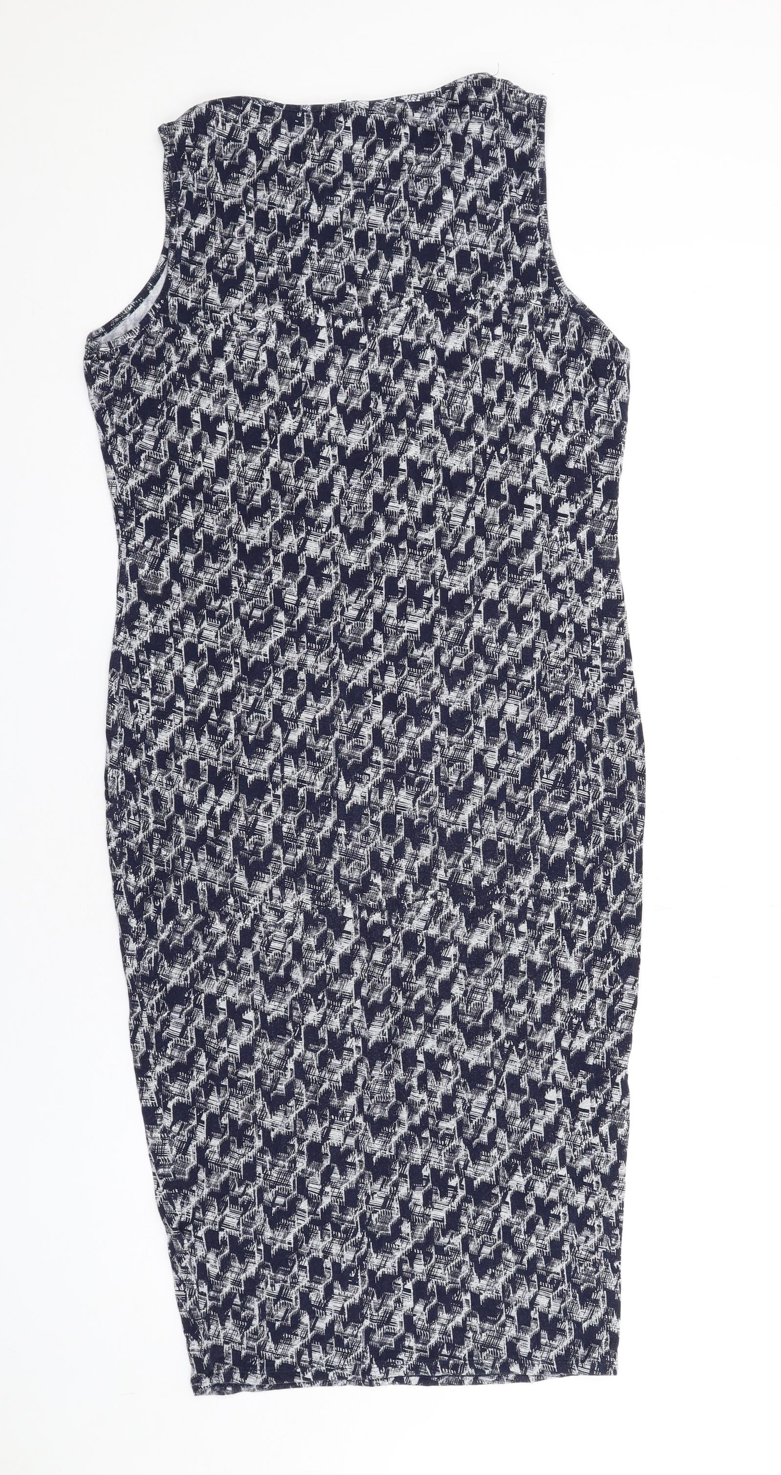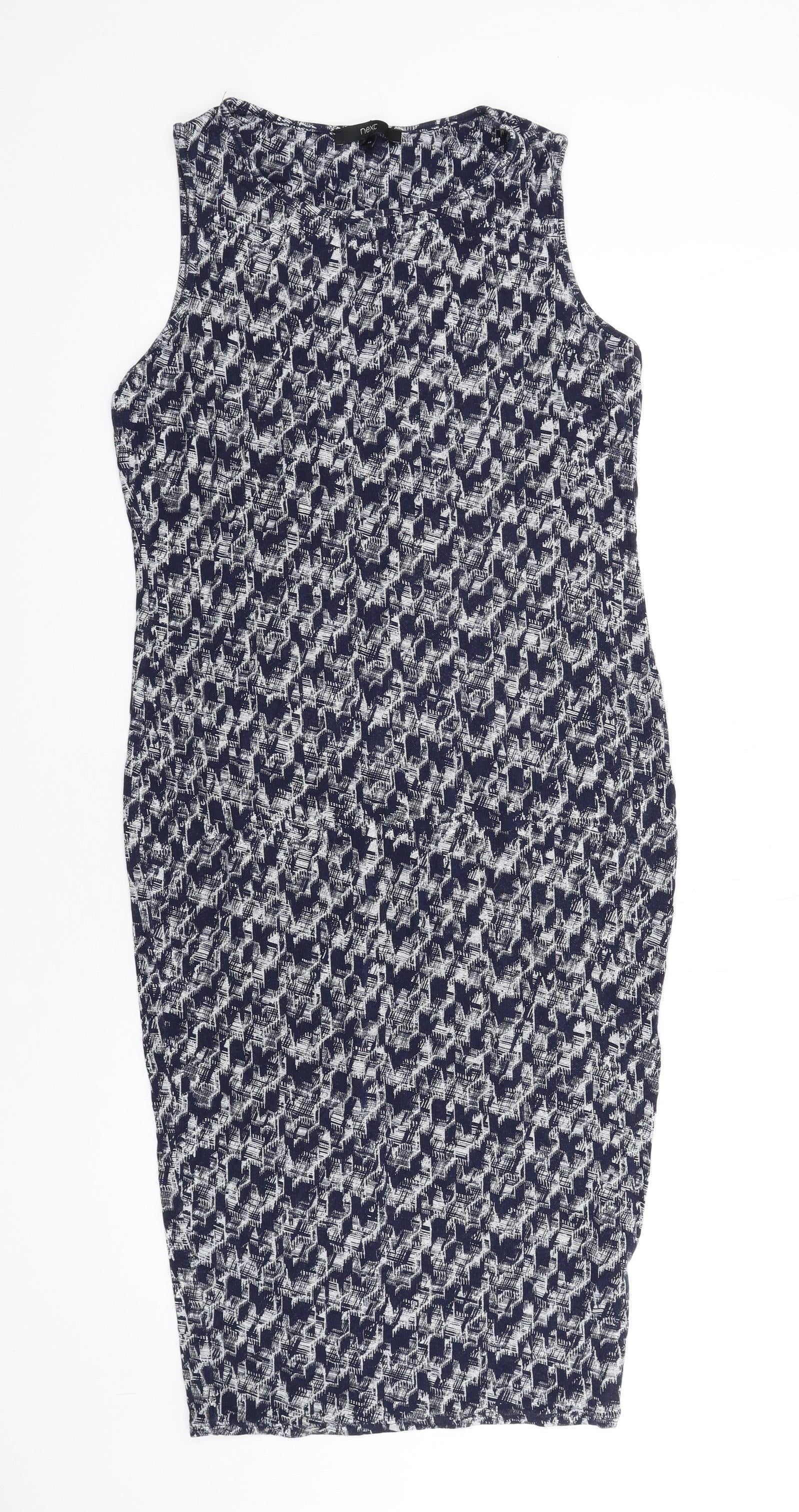 NEXT Womens Blue Geometric Viscose Bodycon Size 14 Round Neck Pullover