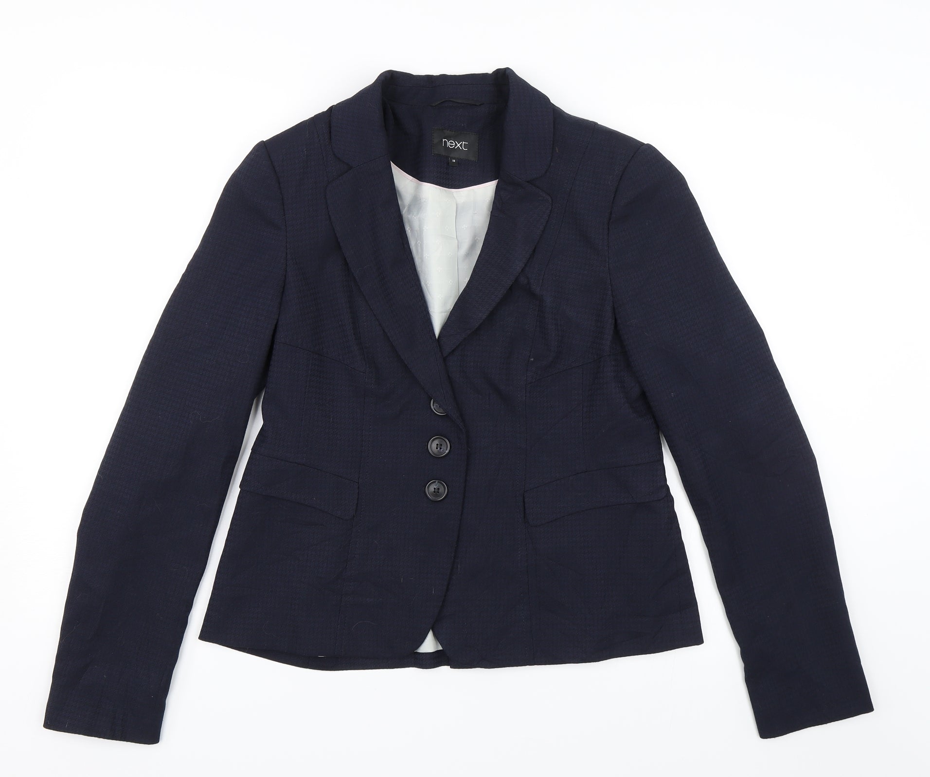 NEXT Womens Blue Houndstooth Jacket Suit Jacket Size 14