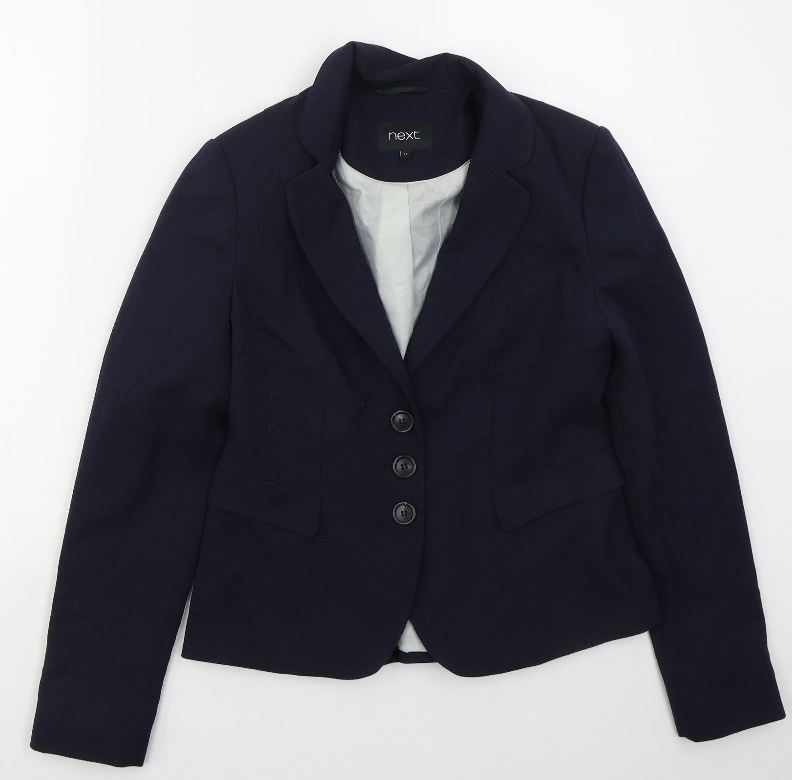 NEXT Womens Blue Houndstooth Polyester Jacket Suit Jacket Size 10