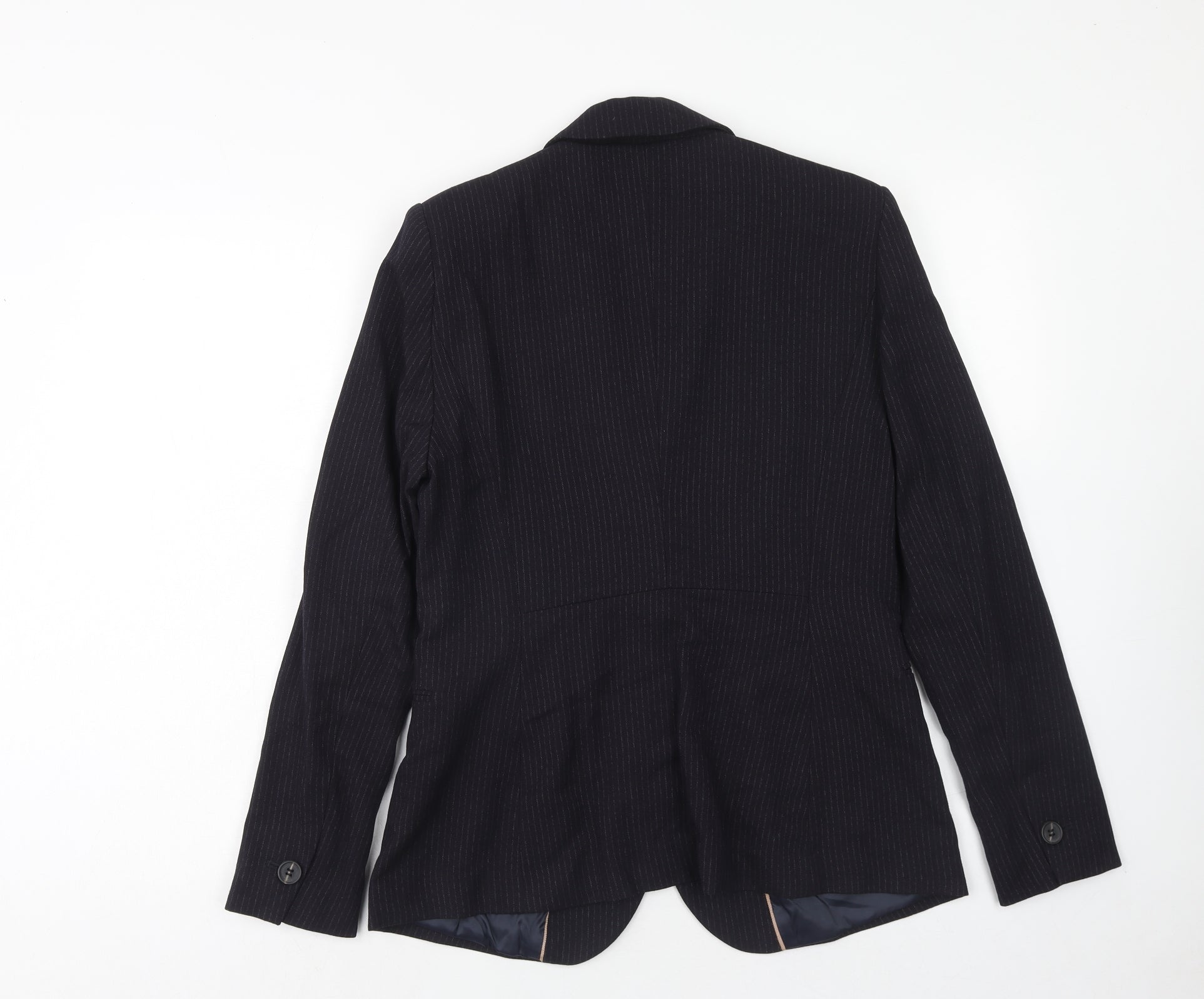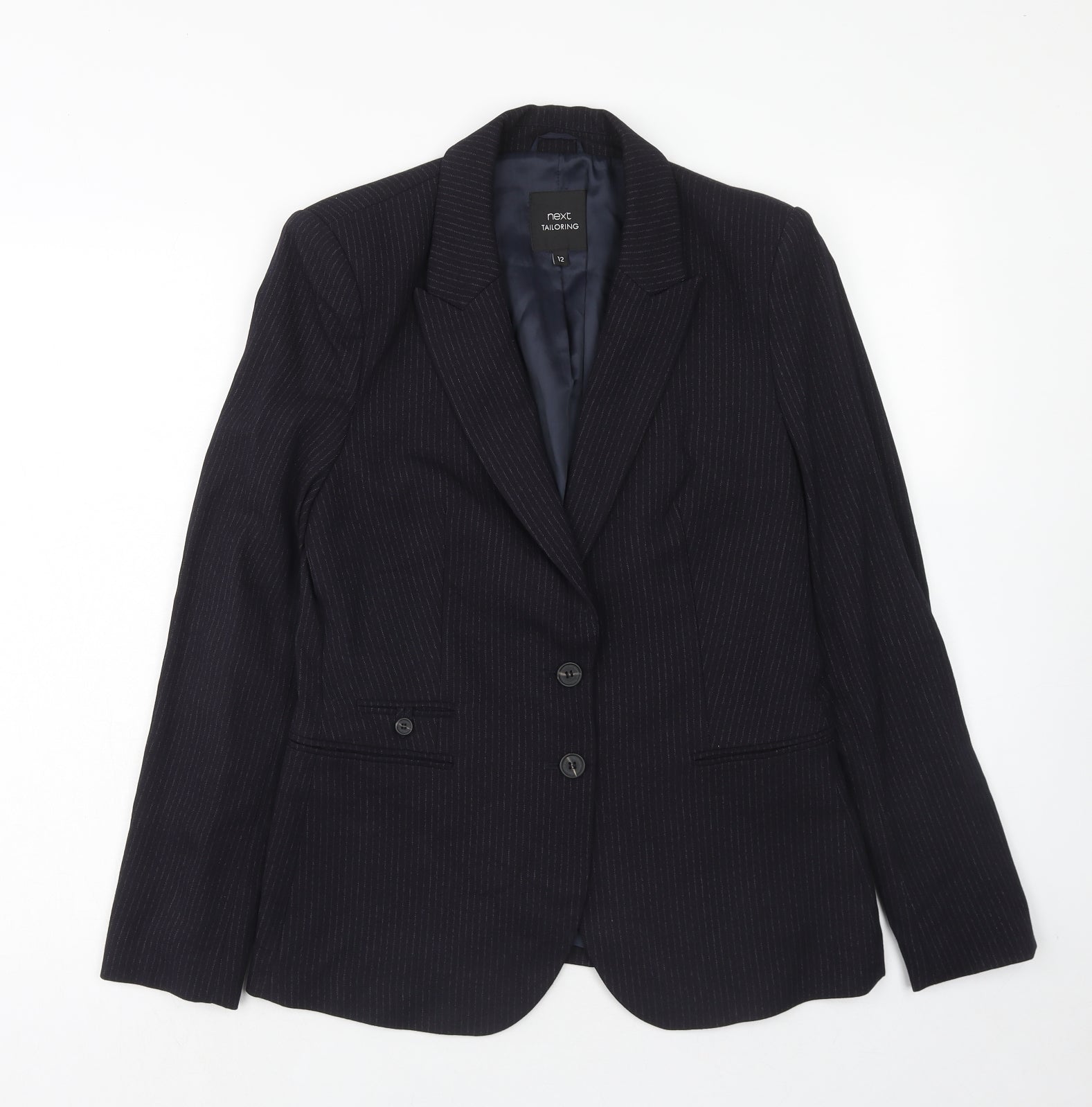NEXT Womens Blue Pinstripe Polyester Jacket Suit Jacket Size 12 Button